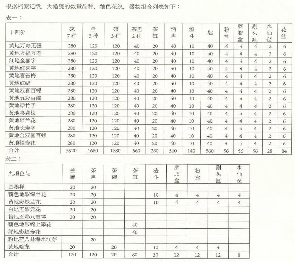 (引自:《同治大婚瓷研究》,董建丽,《故宫博物院院刊》,2010年第3期)