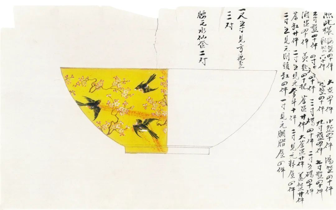 故宫博物院藏制瓷官样——黄地喜鹊梅(无树干)