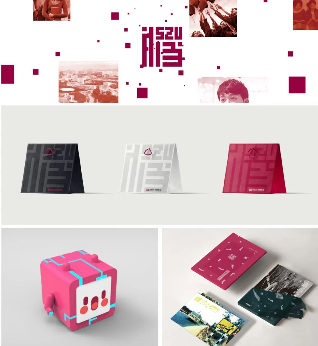 深圳大学档案馆是全国高校里首个数字档案馆,注重历史文化的承载与创新的理念。档案馆形象设计从深圳大学档案馆建筑物中让人记忆深刻的篆书印章元素(二维码印象)里提取了数据点作为造型识别元素。