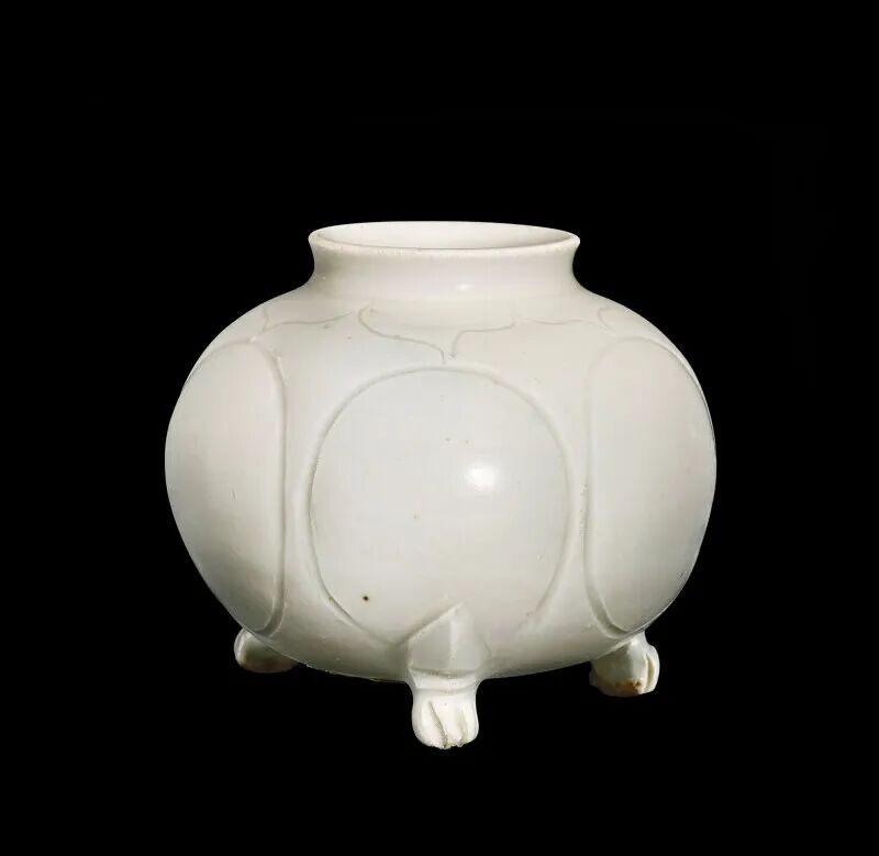 唐至五代 定窑白釉莲瓣纹三足水盂 《官》款