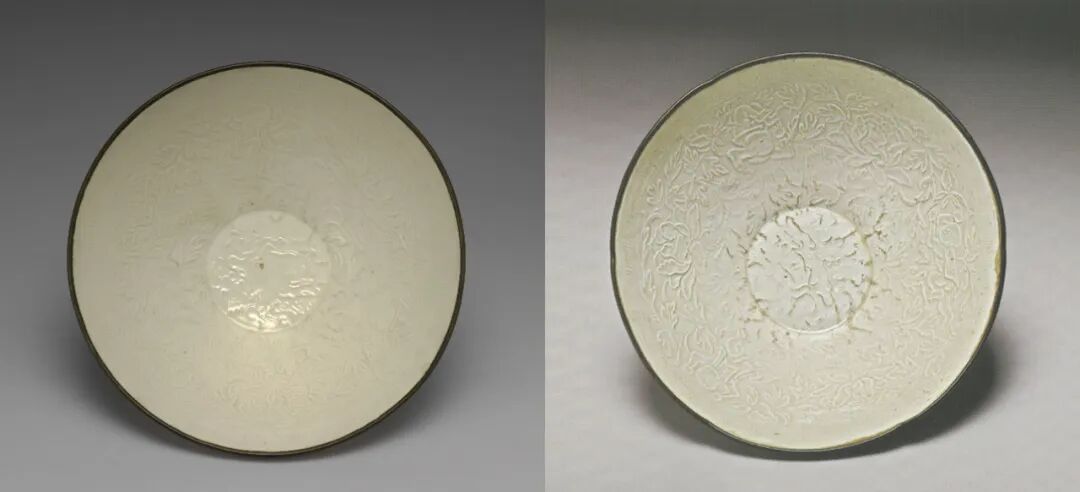 (左)北宋至金十一至十三世纪 定窑印花牡丹婴戏纹碗 台北故宫博物院;