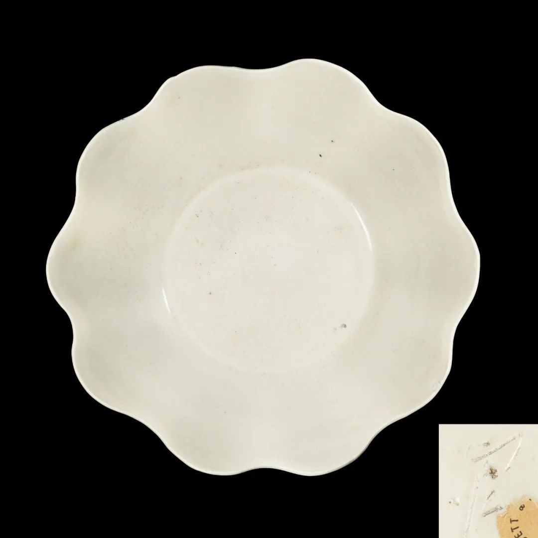 另一件重要定瓷为拍品编号3695,模印牡丹童子纹碗,纹饰清晰,优雅迷人。台北故宫藏二例,或出自同一模器。