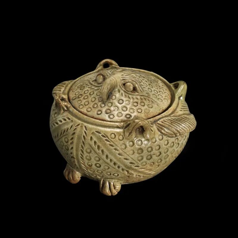 此批珍藏中,年代最早之青瓷,要属拍品编号3691,鸱鸮形盖盒,器表使用大量技法装饰,印、勾、划、刻等等。浙江北部越窑制瓷,多为大量批制,罕见如此各别特制之例。在 Gyllensvrd 的专书中,亦特为此品刊登大图版。