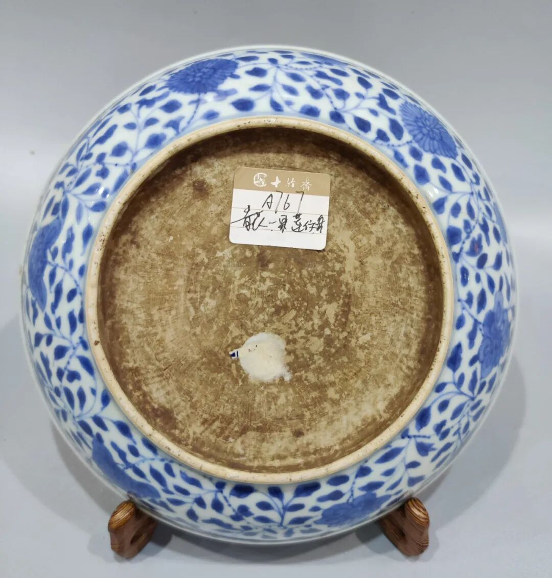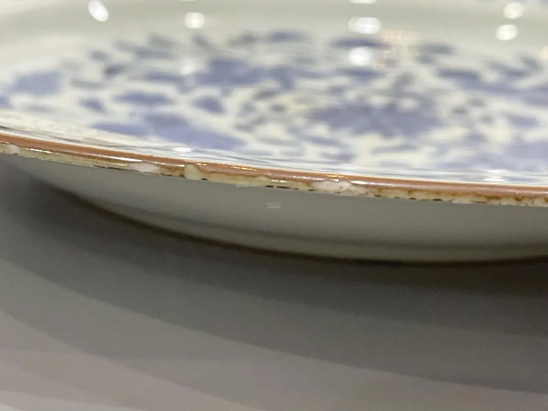 此盘盘沿施酱釉,底釉白中泛青,整个纹饰浓淡自然,没有突兀感。花卉布局层次清晰,缠枝莲线条优美流畅,给人以柔和绵软之感。