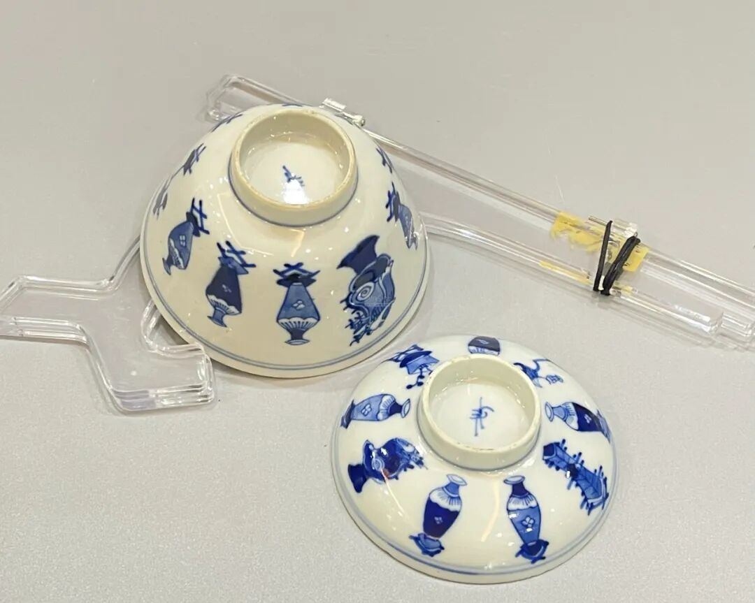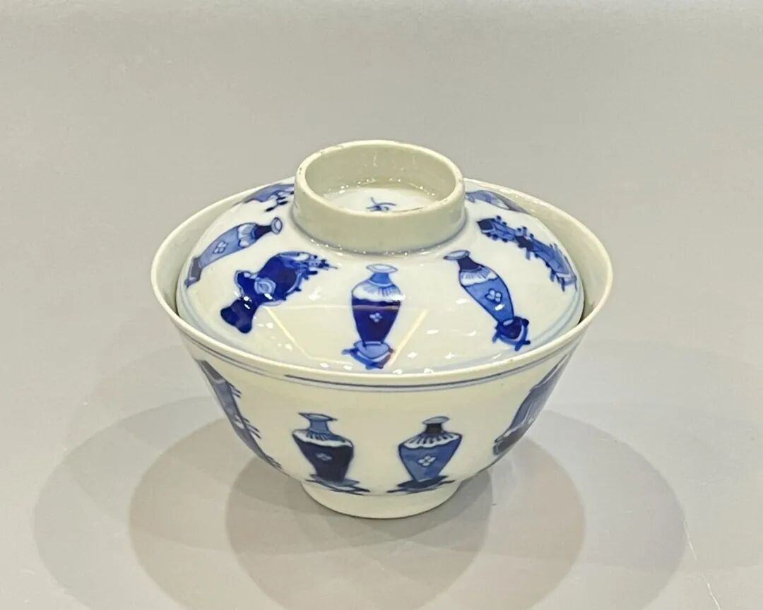 此盖碗胎质细腻,器型周正,绘画线条优美,甚是精美。博古纹,由宋徽宗的《宣和博古图》而来,其上图案为瓷器、文房等,有博古通今、崇儒尚雅之意。