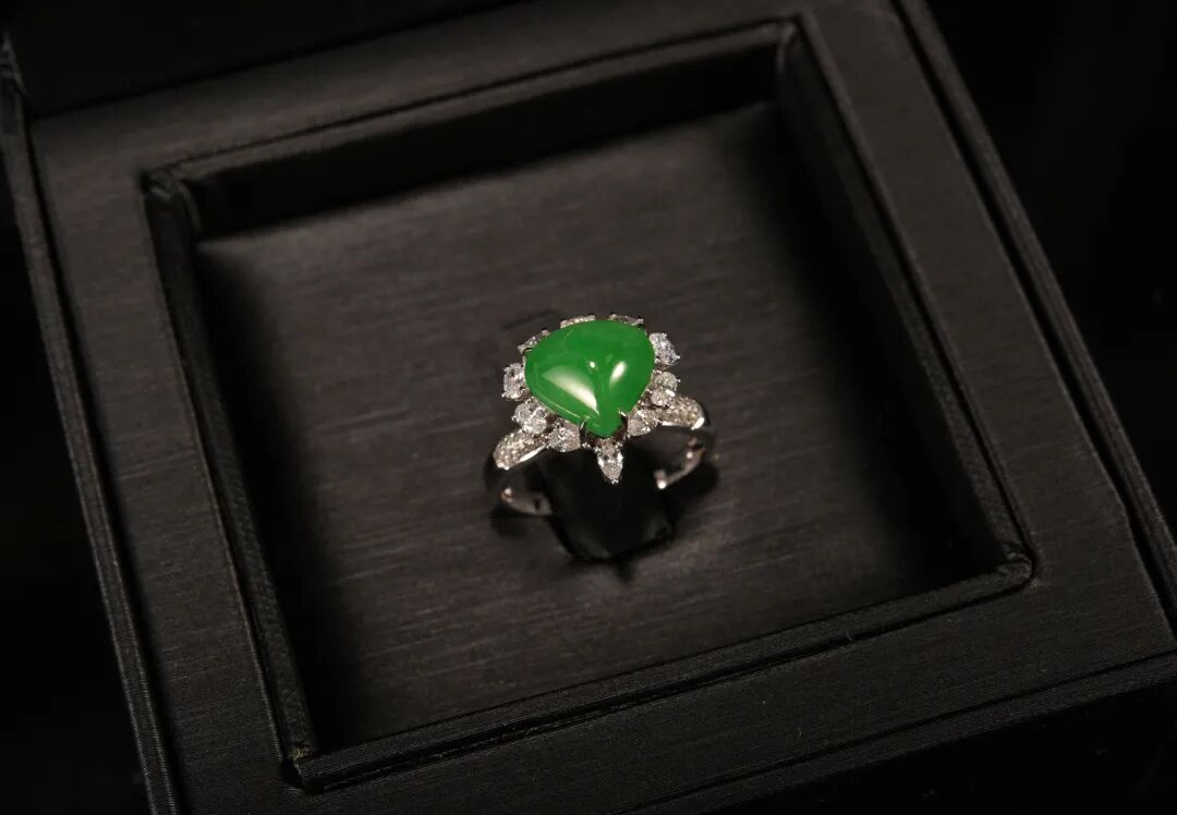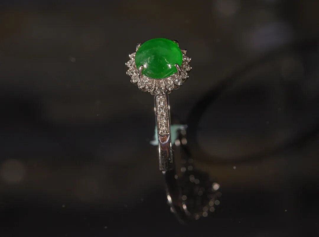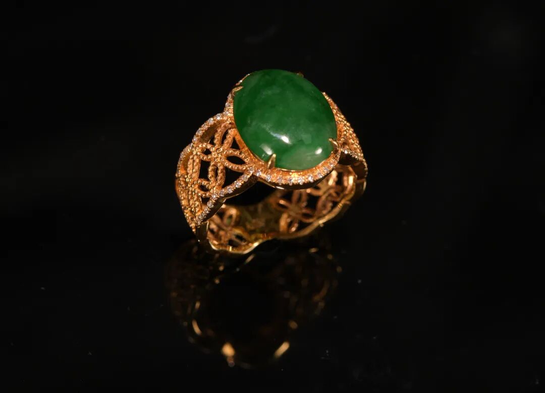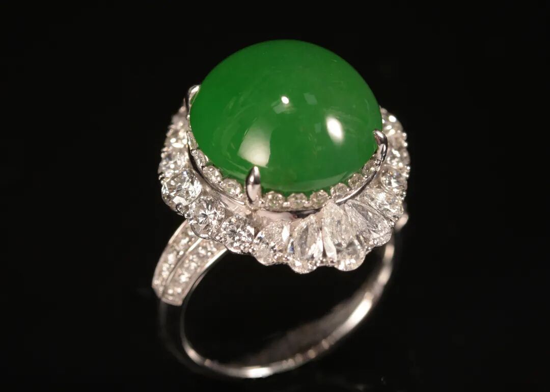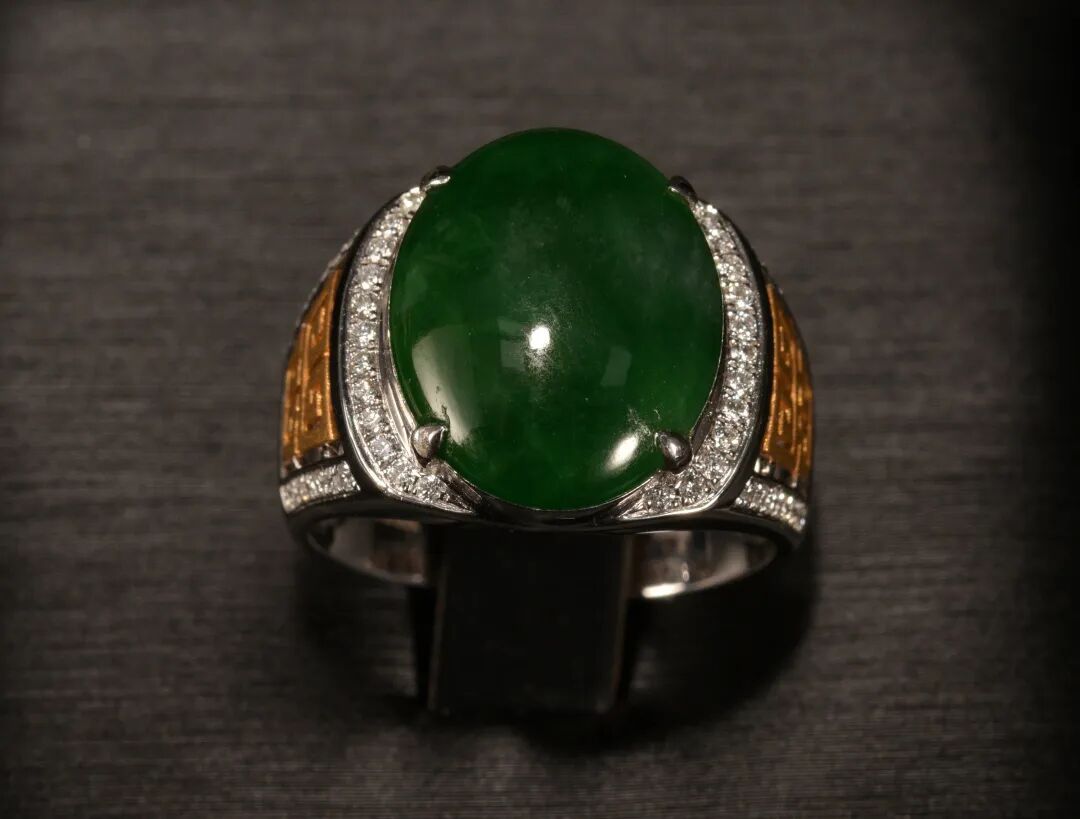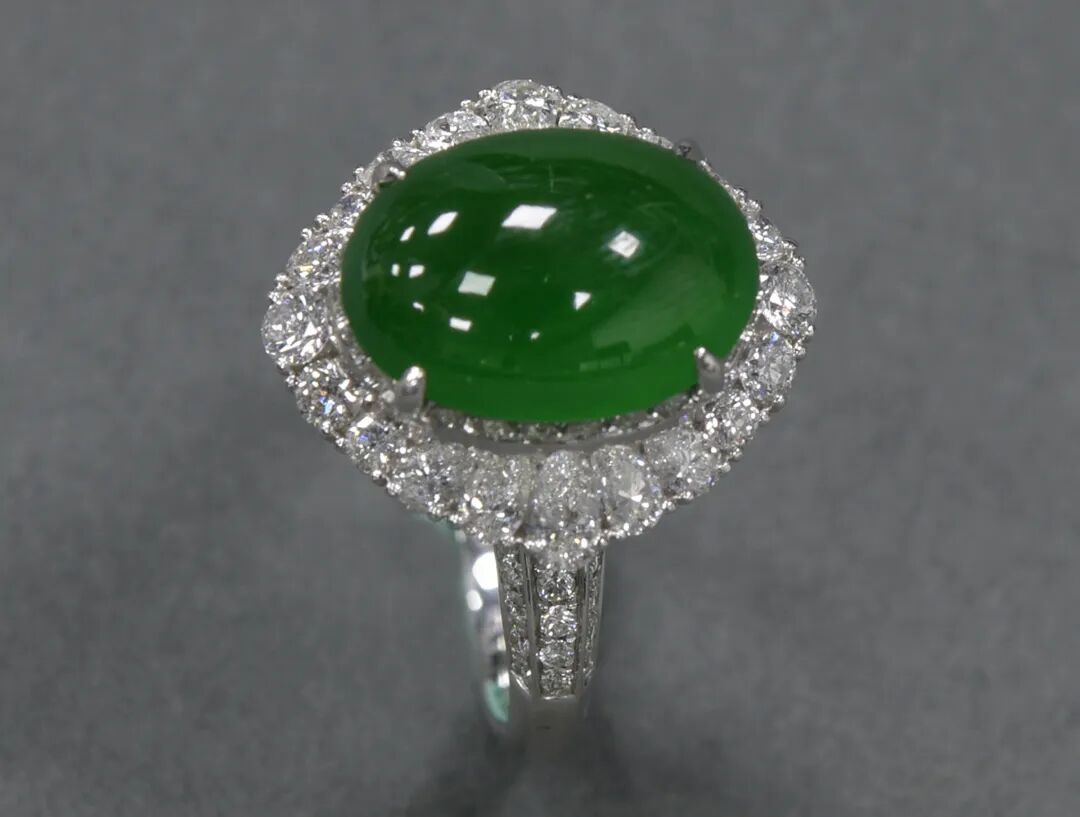 18K金钻石重金镶嵌老坑满绿翡翠戒指