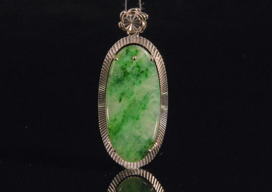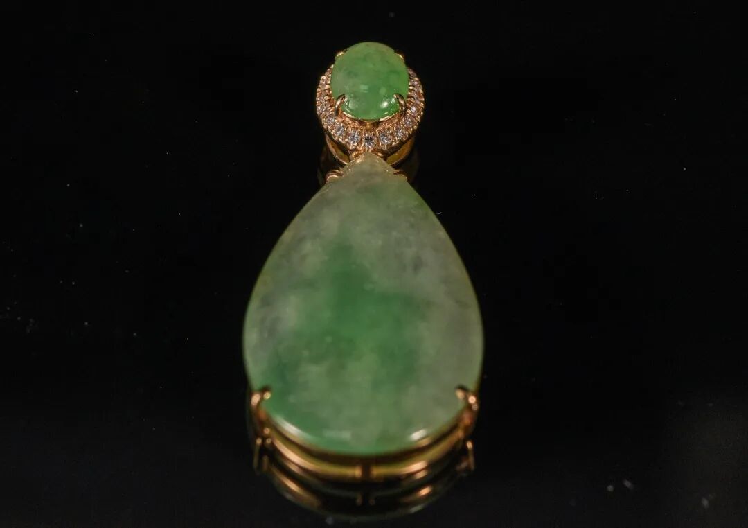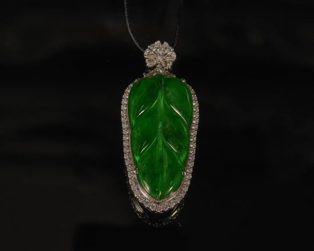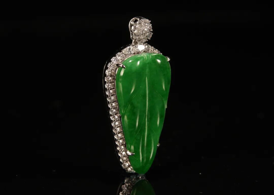 18K金钻石重金镶嵌冰种满绿翡翠叶子吊坠