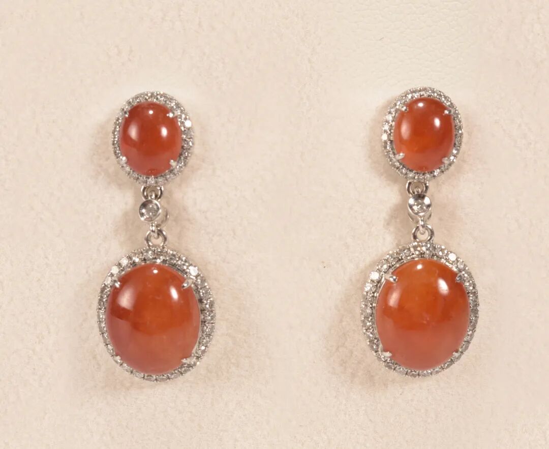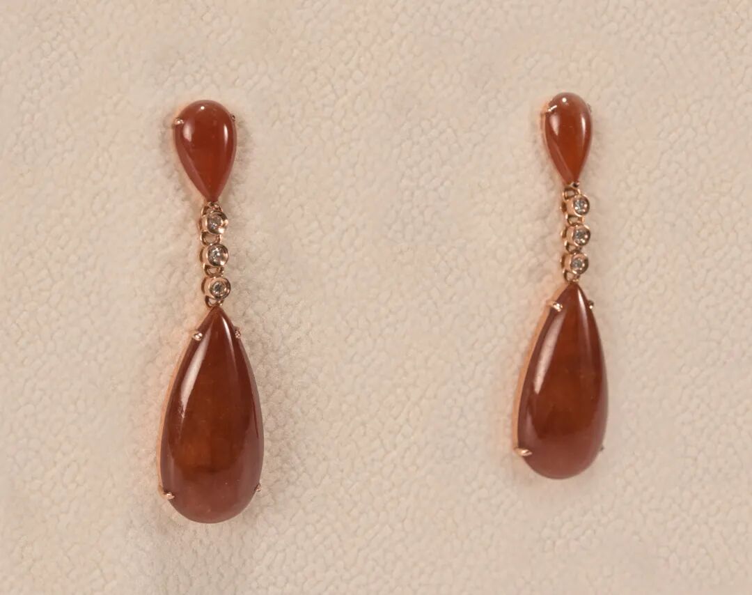 18K金钻石红宝石镶嵌翡翠套环耳坠