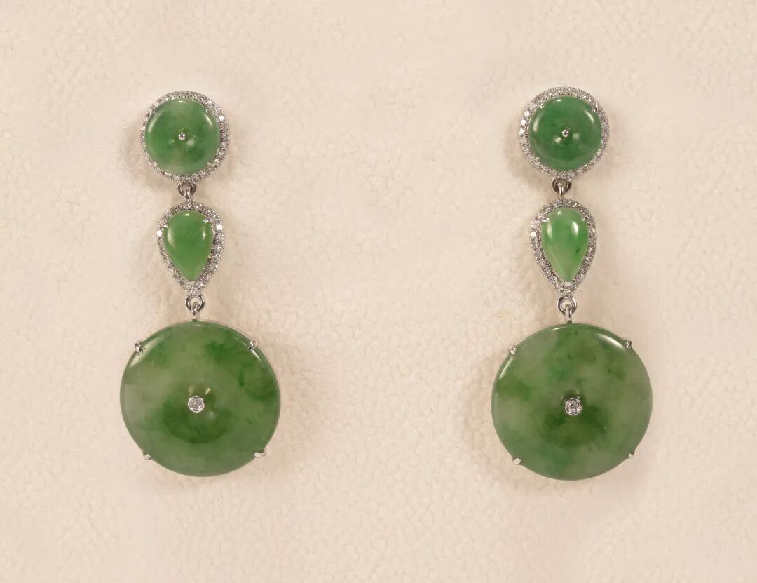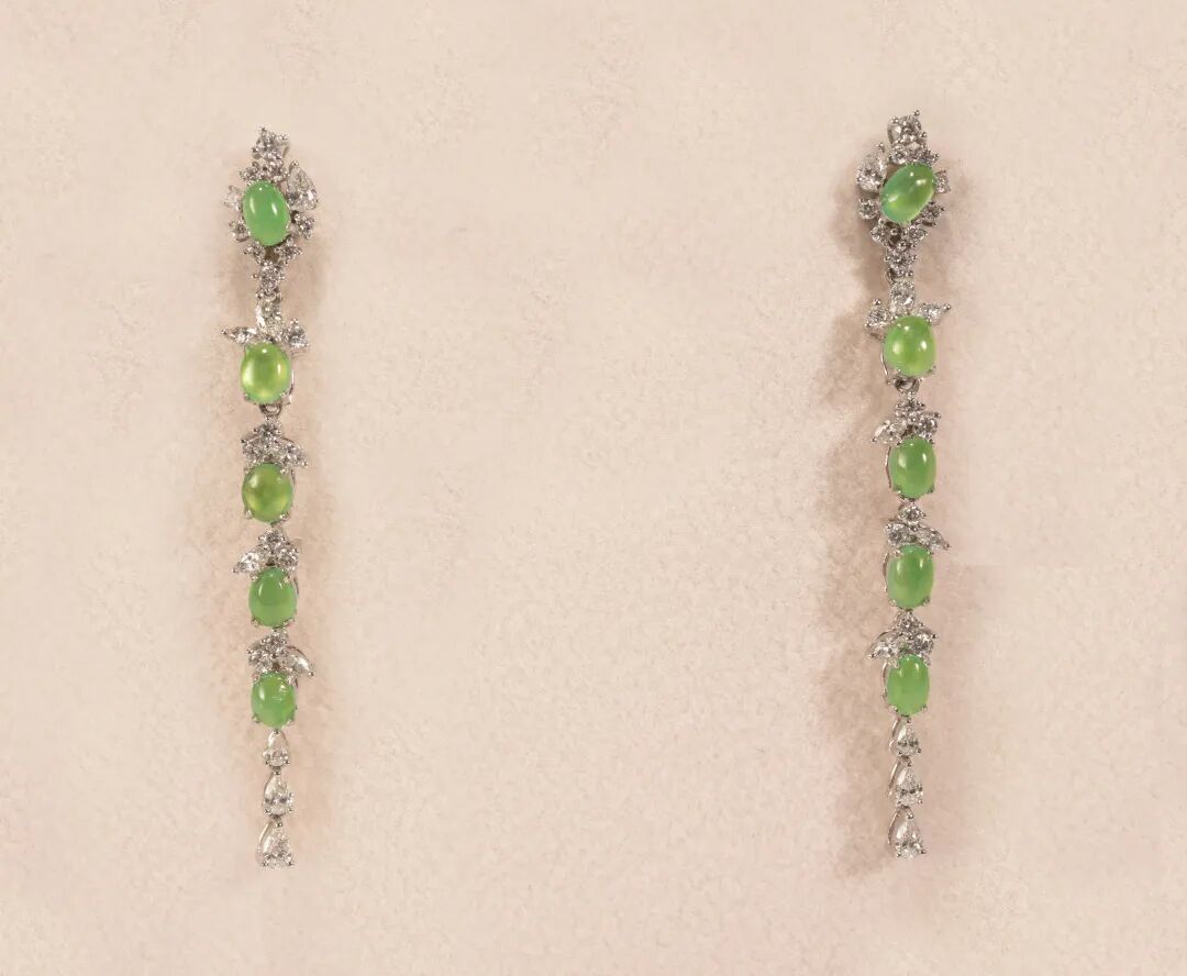 18K金钻石重金群镶高冰阳绿翡翠耳坠