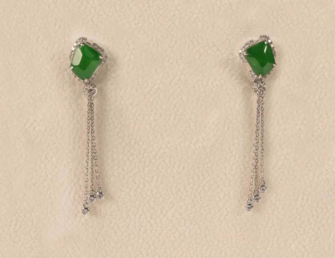 18K金钻石镶嵌极品帝王绿翡翠耳坠
