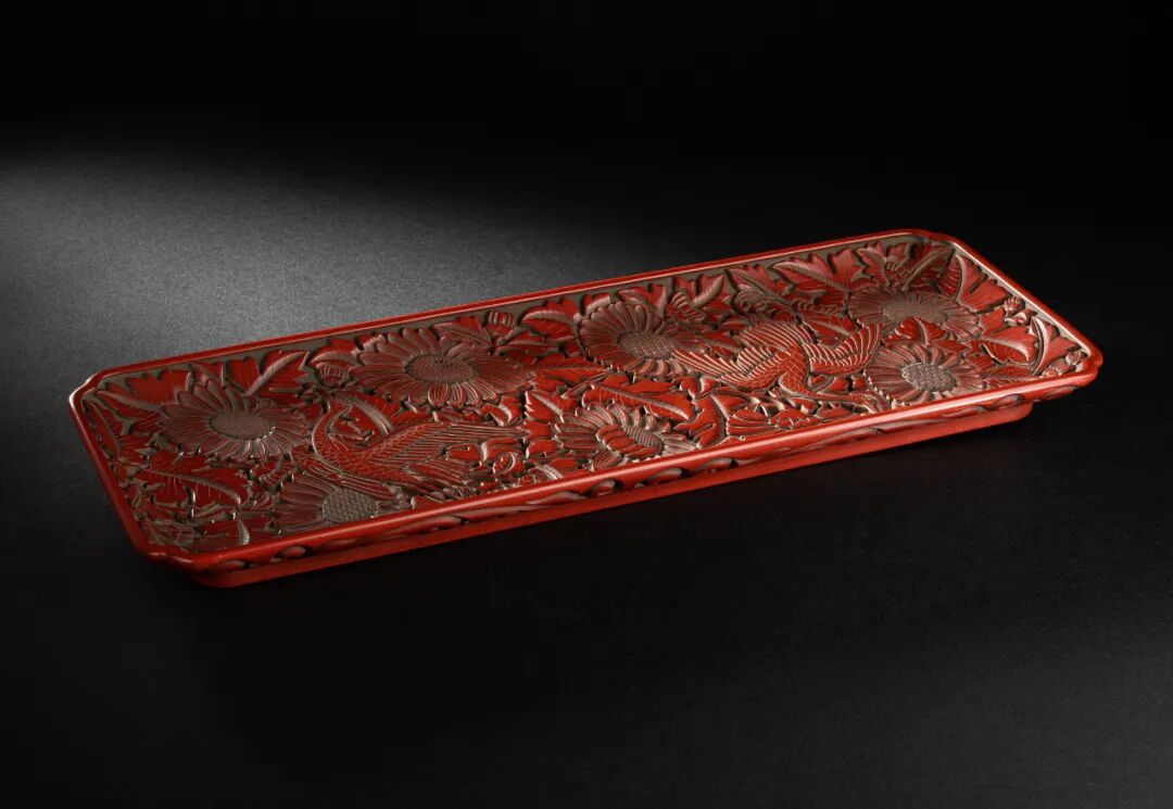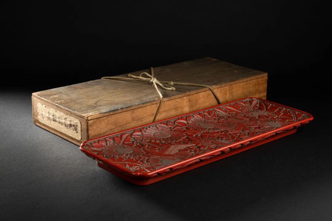 聚宝競売『2022年春季拍卖会』将于4月19日至20日在日本横滨国际艺术中心举行,一连带来「中国艺术珍品」、「中国瓷器」和「中国书画」三大精彩专场,共计562件古董艺术品。联拍在线将全程直播,并提供实时同步竞拍技术和服务支持。聚宝競売每次拍卖都会呈现一些颇为少见,或与重要馆藏相类的中国古董遗珍。本季春拍焦点包括元代 剔红穿花仙鹤倭角长方盘、清雍正 黄地绿彩赶珠云龙纹碗、清雍正 斗彩折枝蕉叶花果纹盘,以及一幅吴昌硕的《蒲塘秋艳》佳作。接下来,小编将对本次拍卖的精彩拍品进行详细介绍。1.《中国漆器&珐琅器收藏精品选》P20,四川美术出版社,2006年12月。2.《宋元之美》,(日本)根津美术馆,2004年。3.《故宫博物院藏文物珍品大系——元明漆器》,上海科学技术出版社、商务印书馆(香港)有限公司,2006年。据黄成《髹饰录》记载,我国雕漆技法出现于唐代:“剔红,即雕红漆也。髹层之厚薄,朱色之明暗,雕镂之精粗,亦甚有巧拙。唐制多印板刻平锦朱色,雕法古拙可赏,复有陷地黄锦者。”后杨明加注补充道:“唐制如上说,而刀法快利,非后人所能及。陷地黄锦者,其锦多似细钩云,与宋元以来之剔法大异也。”这两段记载无疑证明唐代已有雕漆并论及其基本特征,唯至今未见实物。宋元时期,我国雕漆工艺得到发展,至元代已达到炉火纯青的程度。《髹饰录》中评价:“宋元之制,藏锋清楚,隐起圆润,纤细精致。又有无锦纹者。”宋元两代雕漆技法已臻成熟,传世的元代雕漆制品以张成、杨茂等的作品为代表。元代雕漆作品的特点是刀痕不露,磨工大于雕工。剔漆深厚,纹饰线条飘逸自然,漆面包浆亮丽,层次分明,整体布局匀称,题材以花卉为多,一般都花叶密布,雕刻刀法藏锋清楚,花叶禽鸟疏密相间,以花鸟为题材的作品,以花卉衬底,上压飞禽,这种装饰风格至明初仍继续使用。层次感强,装饰极富浪漫色彩,是实用与美观的完美结合,以取得繁简对比的艺术效果,有跃然纸上之感。此件元代剔红穿花仙鹤方盘,时代特征明显。呈长方形四边倭角,沿口上折,侈口圆唇,造型规整稳重,仪态大方。器身通体作剔红工艺处理,剔漆深厚,漆色鲜艳,包浆亮丽,色泽深红,予人典雅沉郁气息,同时又呈现雍容富贵气象。盘上正面作仙鹤花卉图案,刻画两只仙鹤上下飞舞,嬉戏于繁密花丛之中,仙鹤身下雕琢花卉枝叶图案,花繁叶茂,搭配相宜。整体构图布局平稳丰满,使其既富装饰美观之效,又具祥和富贵之意,其剔面层次均匀,雕工精细致密,可谓别具匠心。实为剔红器物之佳品,且有原配盒,殊为难得。