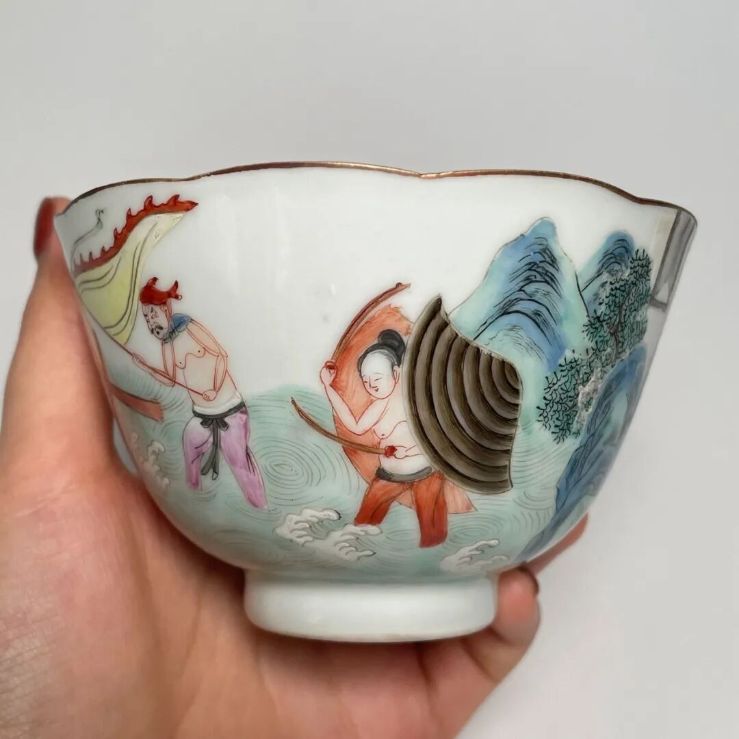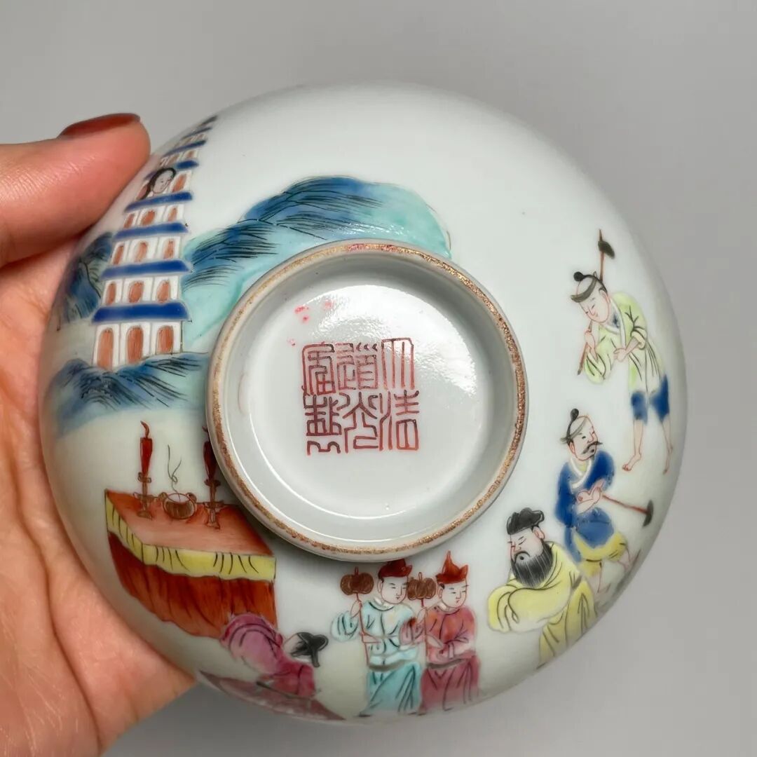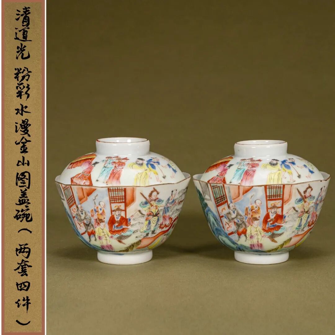 清道光 粉彩水漫金山图盖碗(两套四件)