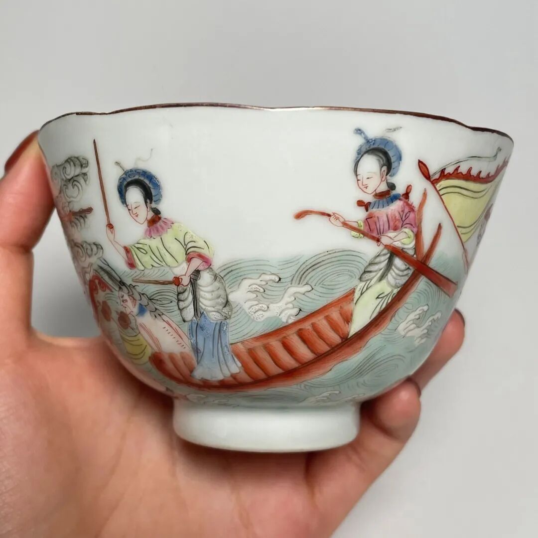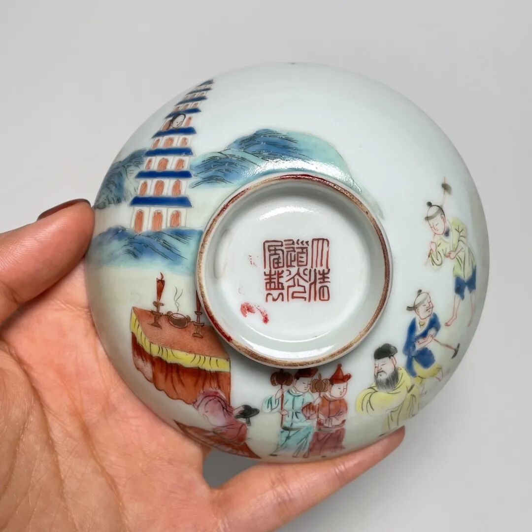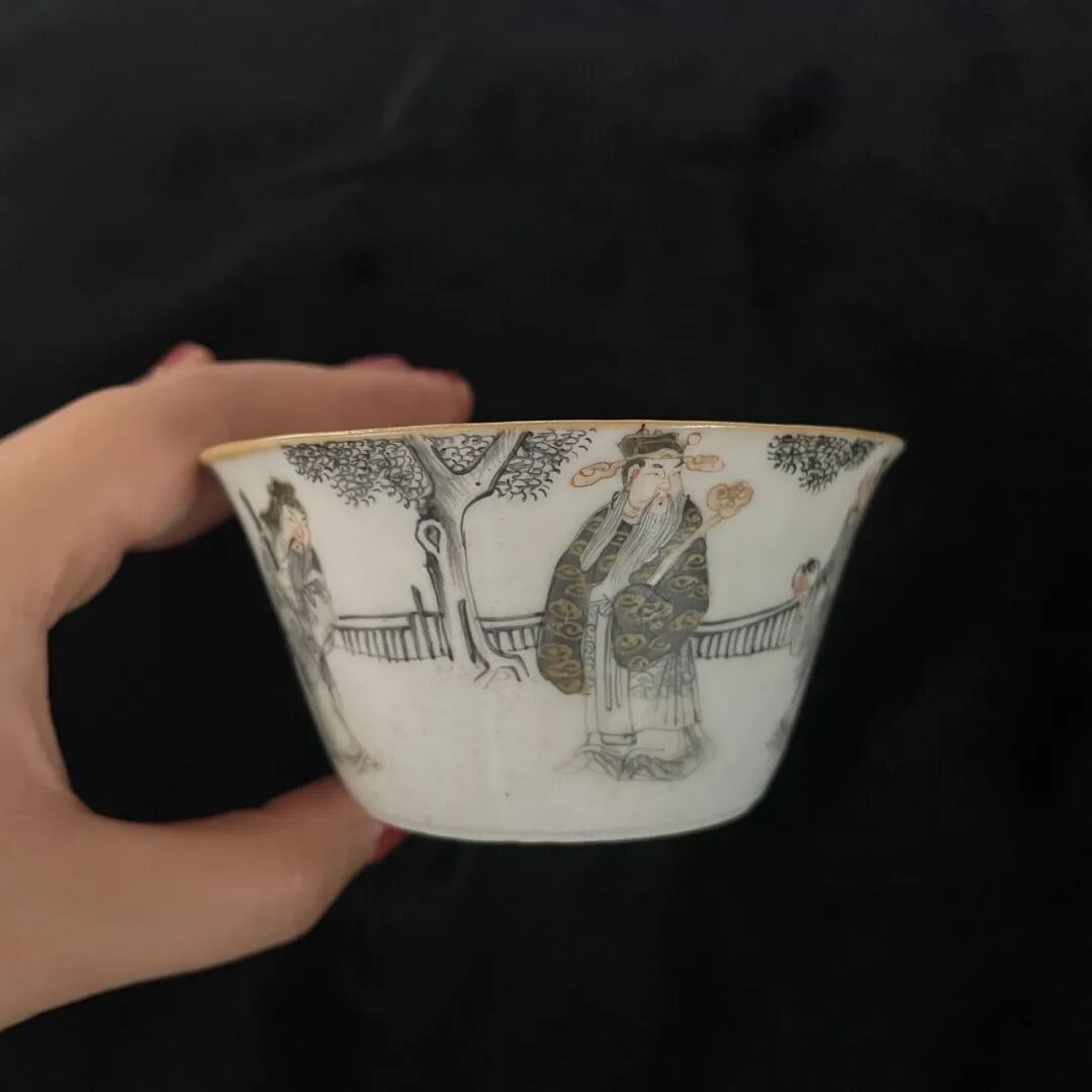 清道光 粉彩水漫金山图盖碗(两套四件)