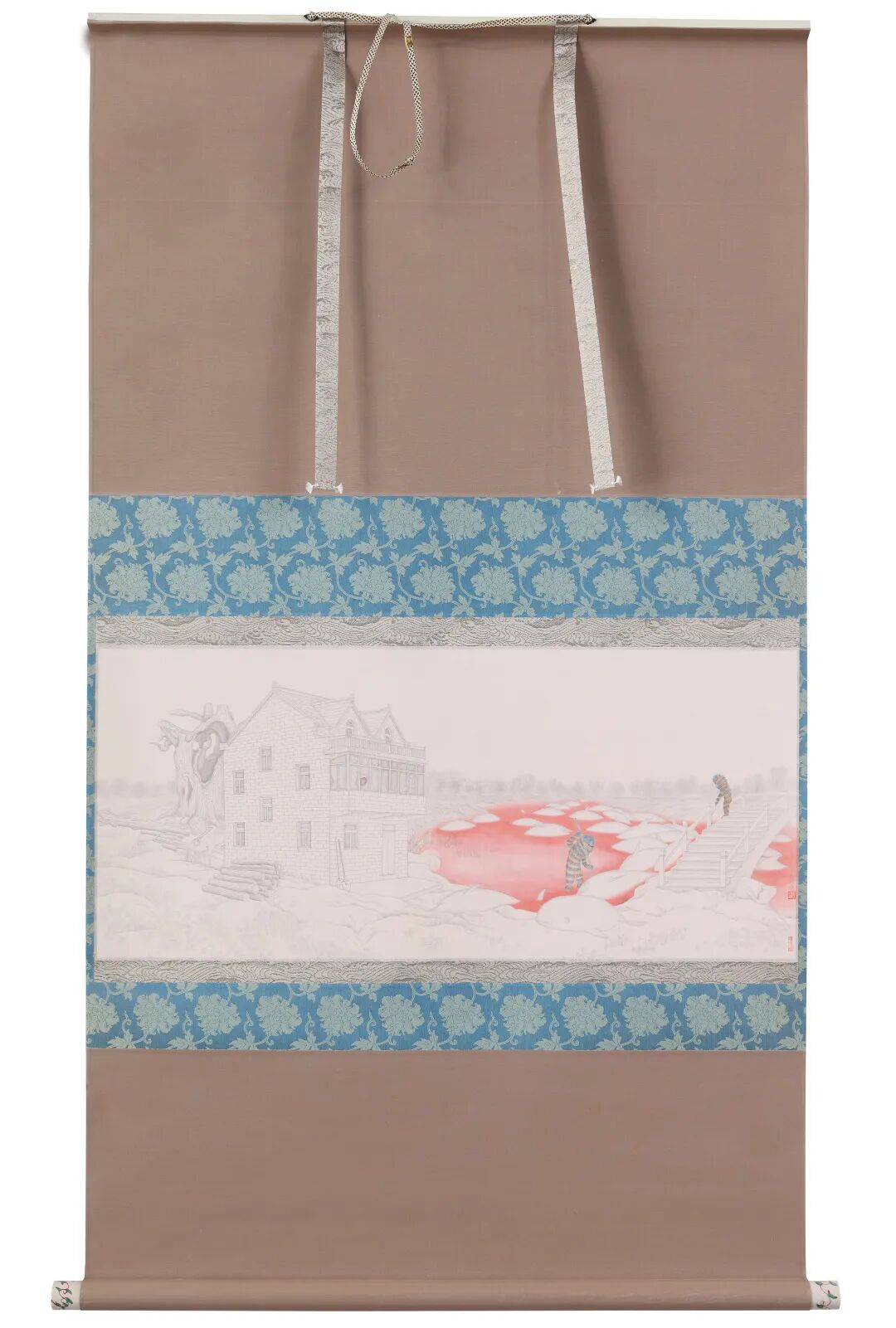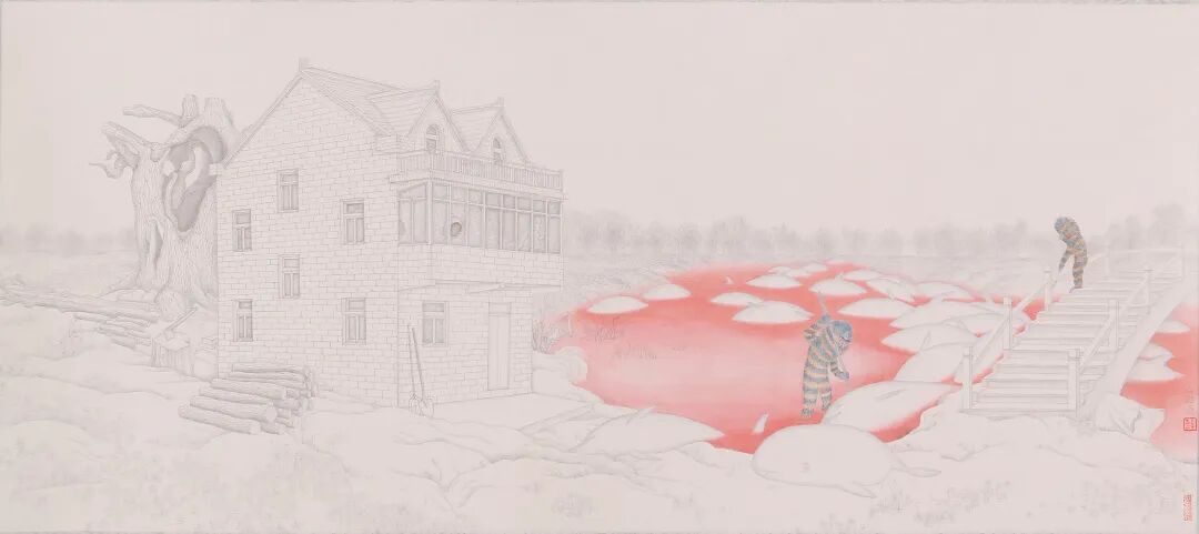 创扎实的线描功底、细腻精致的笔触,营造了静谧阴郁的氛围,在画面的语言构成与象征性表述中对传统水墨进行重新阐述与表现。作品既引申出画面之外的寓意联想,又隐含了画者对现实的冷静审视以及自我状态的内在挖掘。