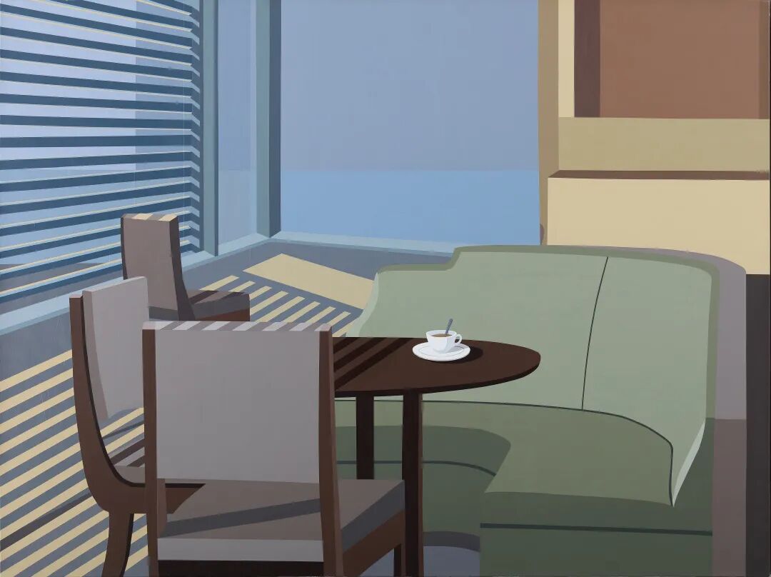 追求纯粹的可见性、绘画的平面性、忠实于材料,让色彩与形状成为主角。这样的画面让视觉的现代性问题浮现了出来,在画面中对纯粹色彩的使用,使得色彩不再单单为造型或营造三维空间服务,而是取得了相对独立的自我存在感;而画面所呈现出的平面感也让形状更加清晰,是把绘画向画布还原的一种结果。画家有意识地在探索色彩与形状各自独立存在又相互依存的价值。