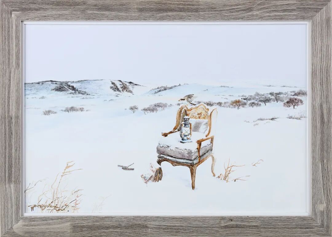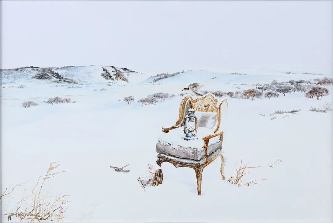 《这么近,那么远》系列是我近几年的主要创作主题。社会的发展造就了巨大的物质财富,现代人逐物的外驰与精神的缺失形成对照,而我也会因此而试着反思自己的人生,思考生命的价值和意义。我把一些人们常用的家居用品放置到空旷的没有人迹的荒野当中,使其与真实的生活场景产生冲突,这时的物品已不再是简单的生活用品,而是作为人们心灵空间的符号而存在。而此时作为画面背景的荒野正暗合了现代人精神领域的某种荒芜。我试着用《这么近,那么远》系列作品来探寻现代人心灵的某种归属。