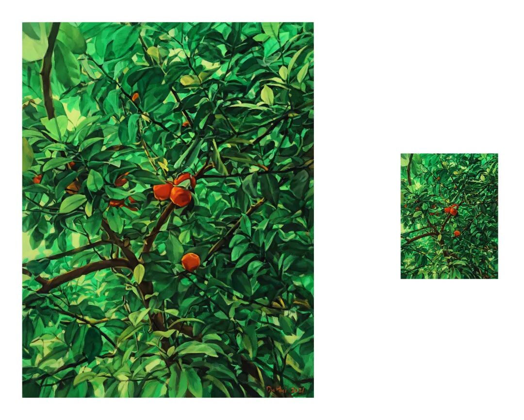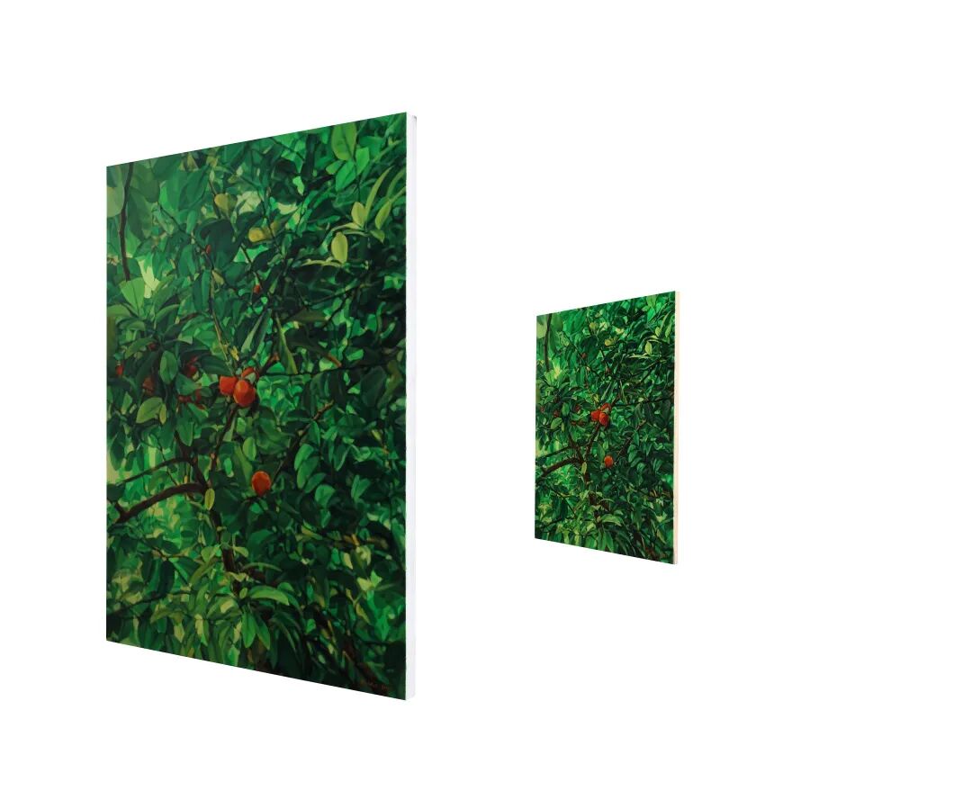 我通过一虚一实、一大一小两幅画面对同一张复杂的植物图像进行绘画,在不借助任何外在辅助手段的前提下(只通过眼睛的来回比较),使两幅画面保持一致,慢慢“生长”。视觉上的模糊与清晰、扩大与缩小使画面产生出不同的空间和节奏,使之互成为彼此的“结果”。