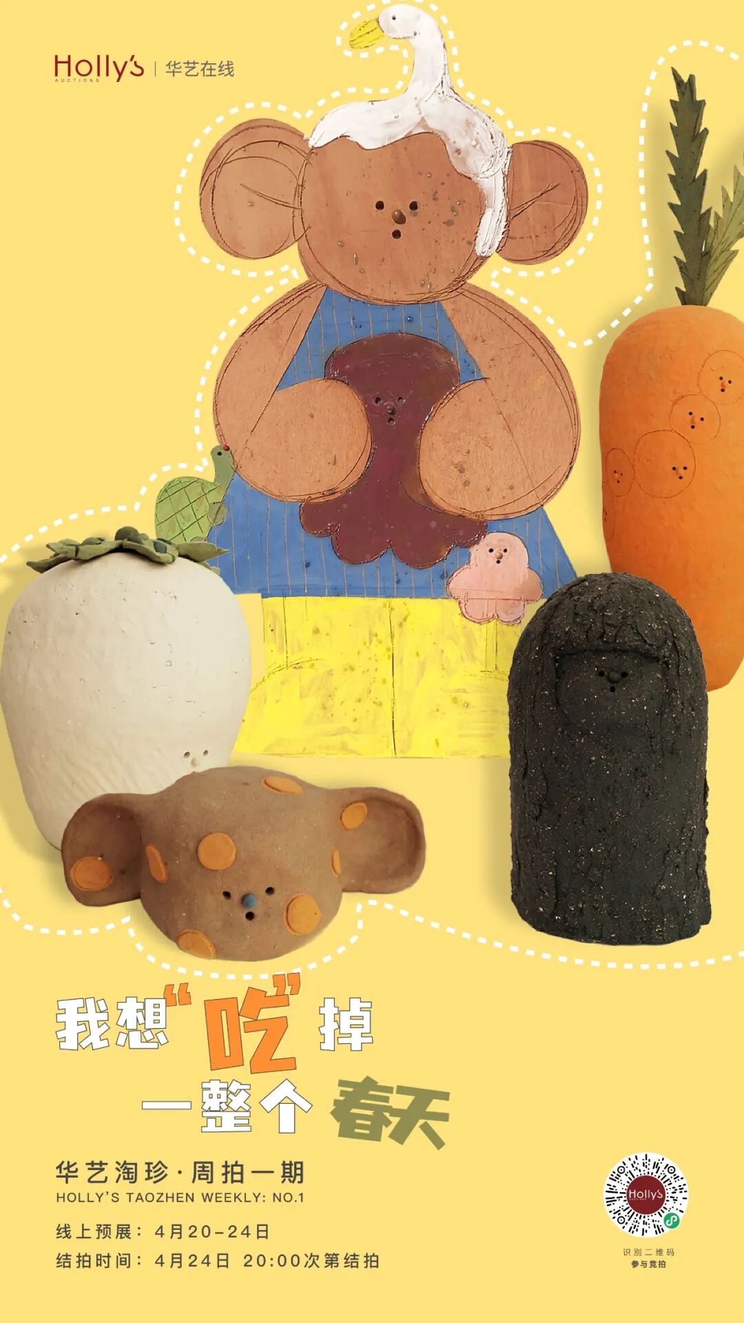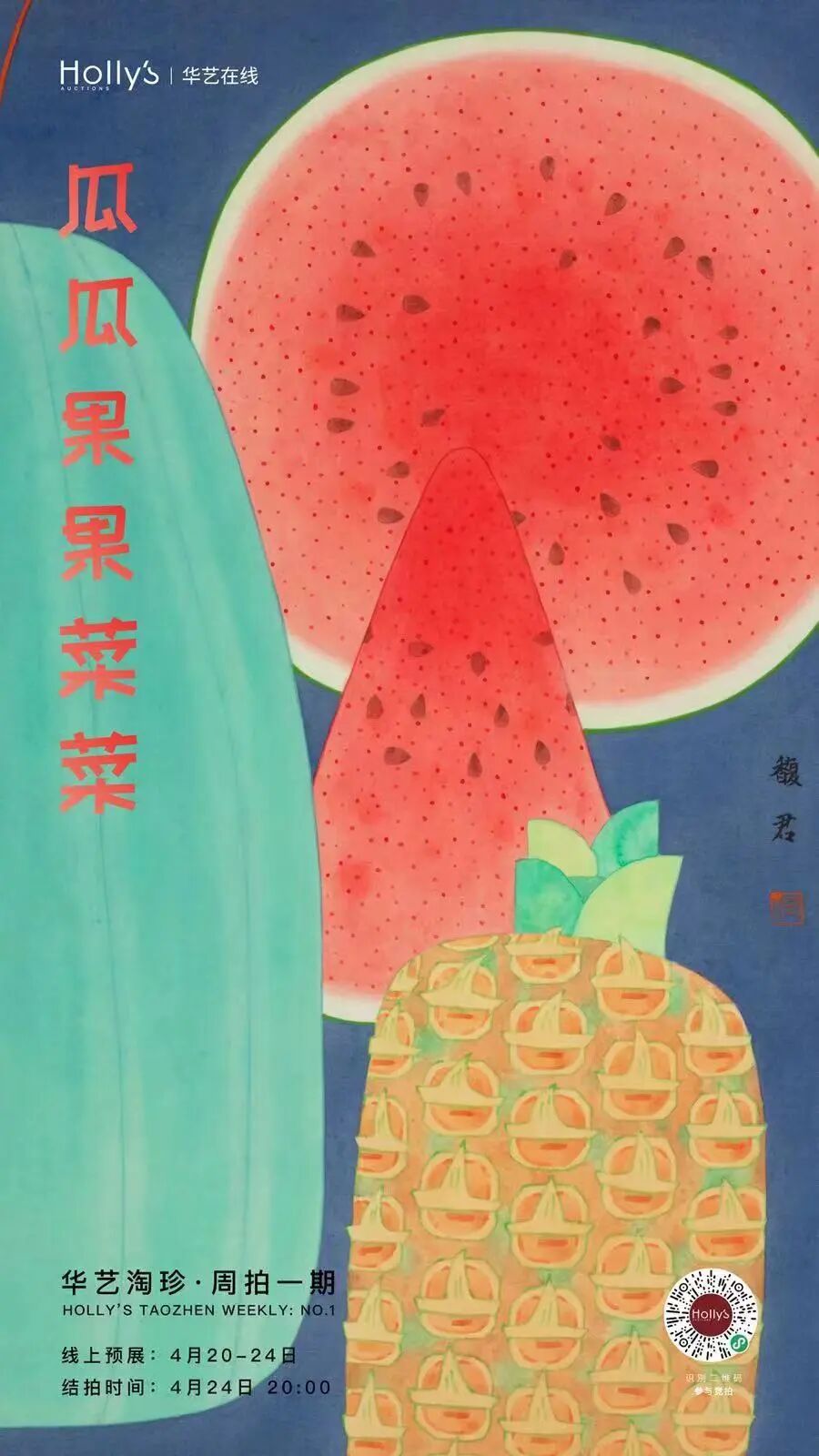 “华艺在线 · 周拍一期线上拍卖会”,华艺国际现当代艺术部倾心策划主题网拍—我想“吃”掉一整个春天,主题专场将于4月20日上线,4月24日20:00次第截拍。在当下疫情的雾霾中,艺术的美好也许能为我们驱散一些灰暗,我想“吃”掉一整个春天专场包含“瓜瓜果果菜菜”、花花草草树树”两个专题,带来一系列油画、绢本、雕塑、限量版版画及艺术衍生品。在这个心灵比身体更早感知的季节,随艺术去亲近平凡但抚慰我们的食物,去触碰园子里开花的树和枝头吹过的微风,在落英缤纷的惬意中,共赴一场和春天的约会。
