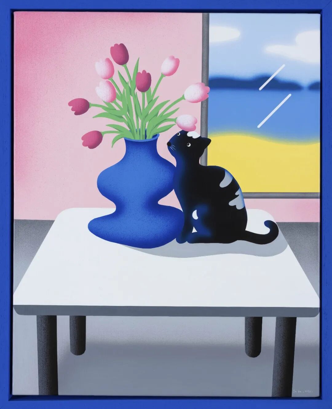 《午后的黑猫和郁金香》禹露