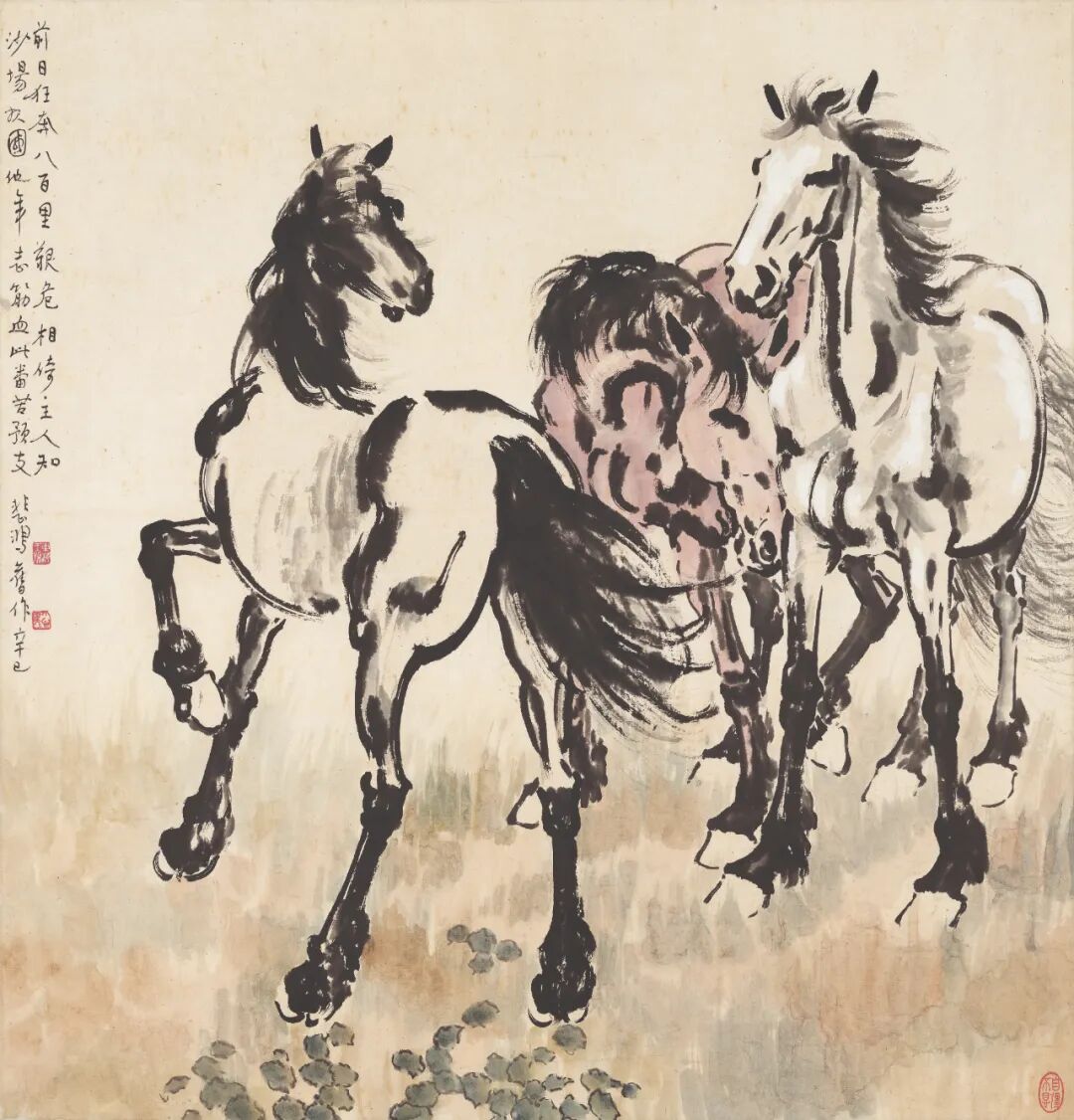 徐悲鸿创作于1919年之《三马图》