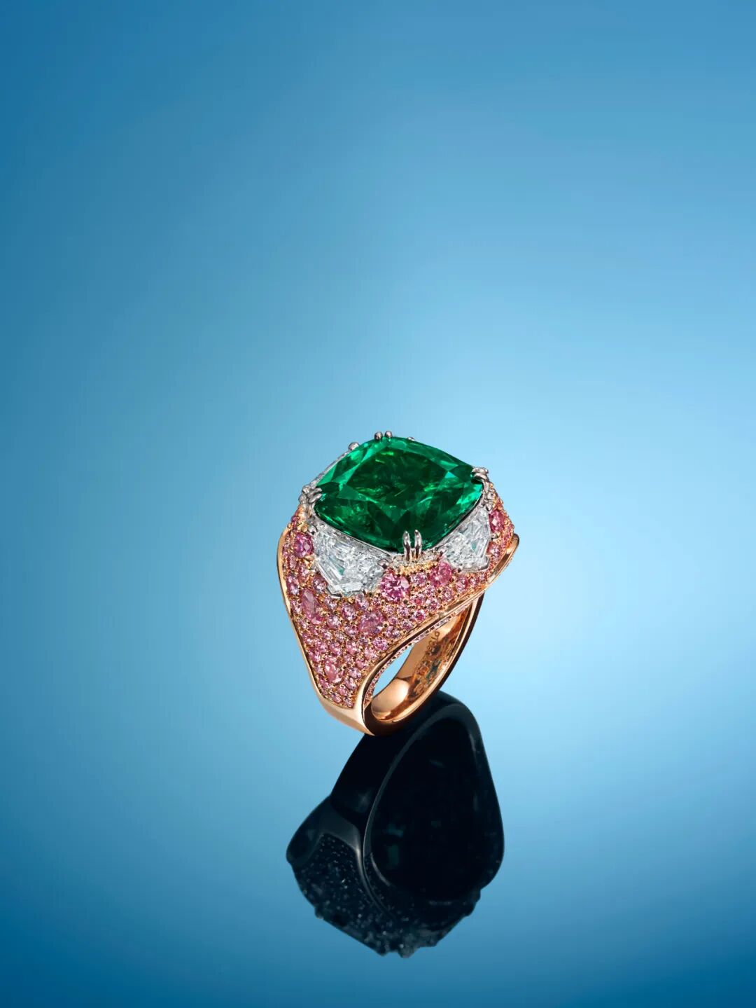 9.20克拉哥伦比亚天然祖母绿,粉红色钻石及钻石戒指