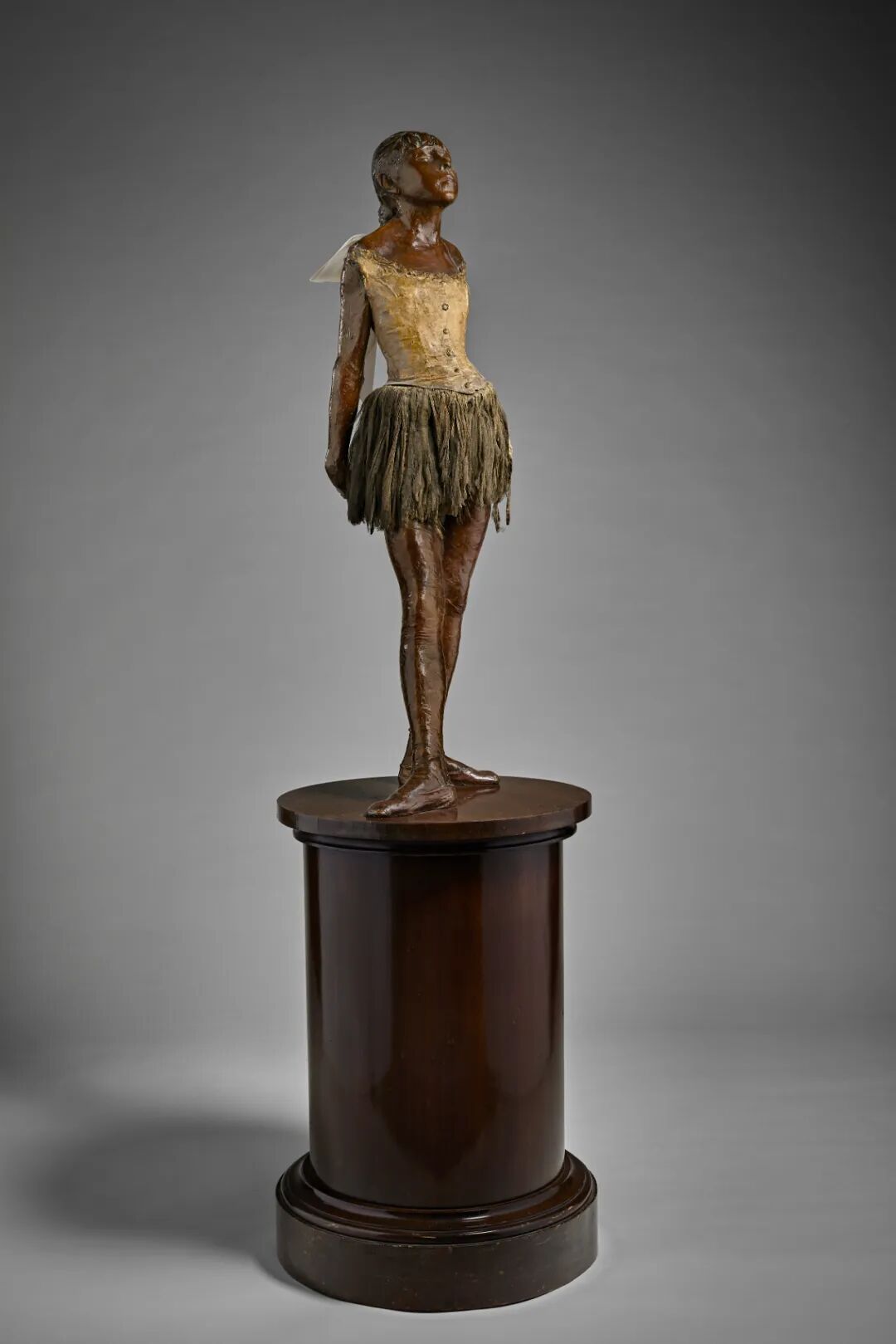 巴斯夫人对纽约市芭蕾舞团贡献良多,而她的收藏亦反映其毕生对舞蹈的热爱。她自小便开始学习芭蕾舞,更于2010年执导纪录片《Dancing Across Borders》,讲述一位年轻柬埔寨舞者索克瓦纳拉·萨尔 (Sokvannara “Sy” Sar) 努力成为顶尖舞蹈家的历程。巴斯夫人也拥有获誉为 “舞者之画家” 的德加的三件作品,分别为一幅粉彩画、一尊青铜雕塑和一幅油画。 德加于1887年以其喜爱的粉彩创作《系鞋带的舞者》(Danseuse attachant son chausson),这幅经典的粉彩画作原本挂于巴斯夫人的睡房内。画作刻划一位休息中的芭蕾舞者俯身系好芭蕾舞鞋的缎带。德加在观众如云的知名巴黎歌剧院找到源源不绝的创作灵感,包括昏暗的角落、侧台、更衣室,以及最重要的排练室,他经常在排练室捕捉舞者令人意想不到的姿态。 这幅粉彩作品曾由美国艺术赞助人路易丝娜和亨利·哈弗梅耶夫妇 (Louisine and Henry Havemeyer) 收藏,他们的传奇珍藏包括历来数量最多和最全面的德加作品。哈弗梅耶伉俪与德加私交甚笃,路易丝娜逝世后,将35幅德加的油画和粉彩画,以及所有青铜雕塑(其中两尊除外)遗赠予美国大都会艺术博物馆 (Metropolitan Museum of Art),是其近2,000件重要遗赠作品的一部分,对博物馆意义非凡。