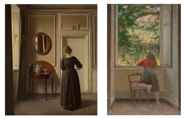 左:威廉·哈莫修依 (1864-1916) 《客厅(室内与椭圆镜)》,1900年作。油彩 画布。55 x 46 cm.。估价:美元 1,500,000 - 2,500,000。右:巴尔蒂斯 (1908-2001) 《窗边的女孩》,1955年作。油彩 酪蛋白颜料 画布。195 x 130 cm,。估价:美元 4,000,000 - 6,000,000。两幅作品均于2022年5月在佳士得纽约安妮·巴斯珍藏拍卖中呈献