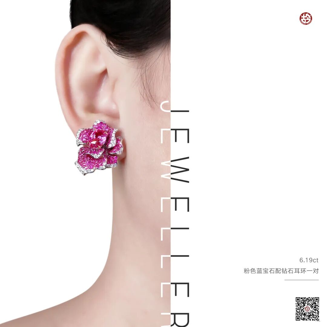 6.19克拉粉色蓝宝石配钻石耳环一对