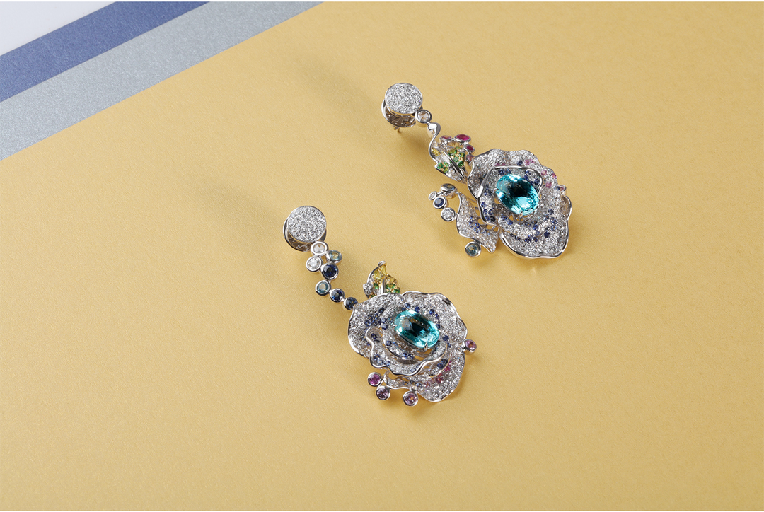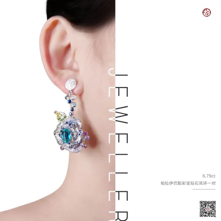 6.79克拉帕拉伊巴配彩宝钻石耳环一对