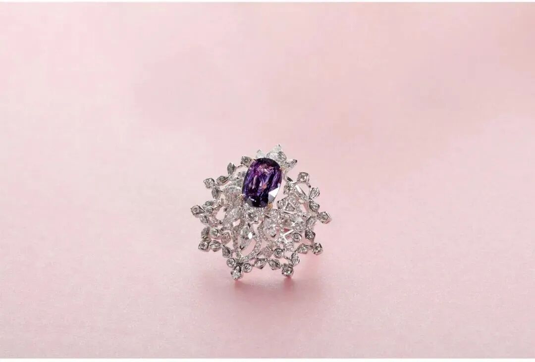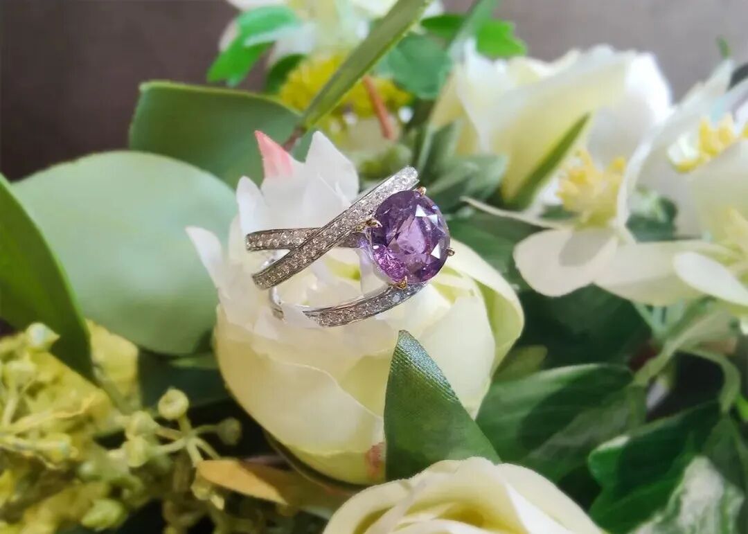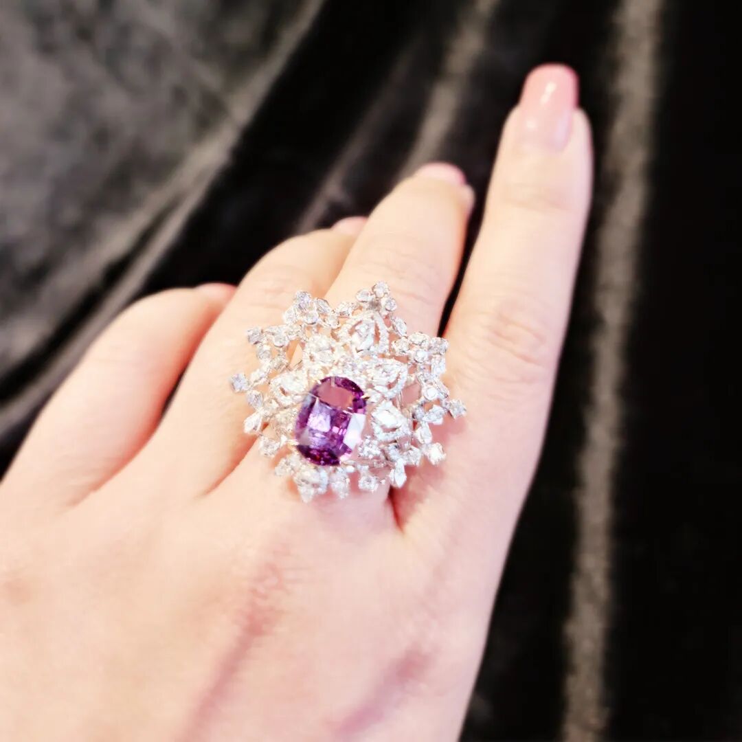 3.05克拉无烧紫色蓝宝石配钻石戒指