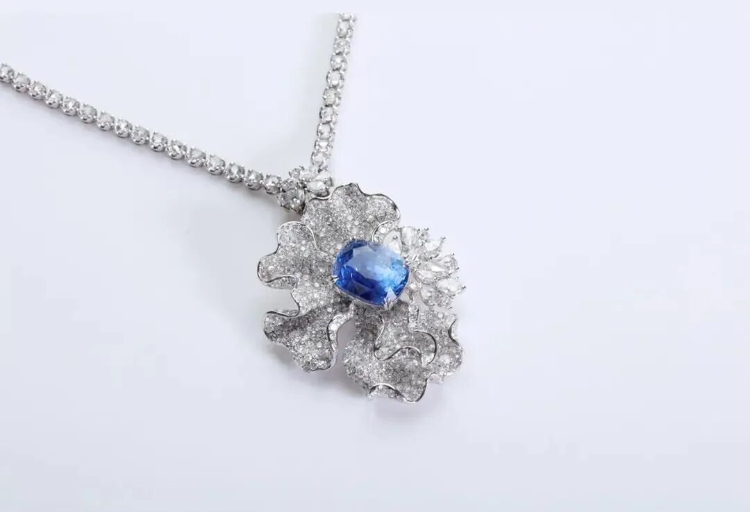 13.23克拉蓝宝石配钻石项链、戒指两用