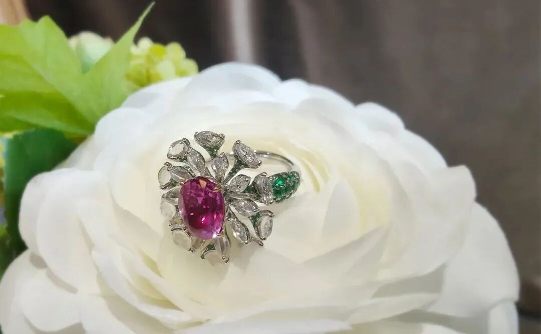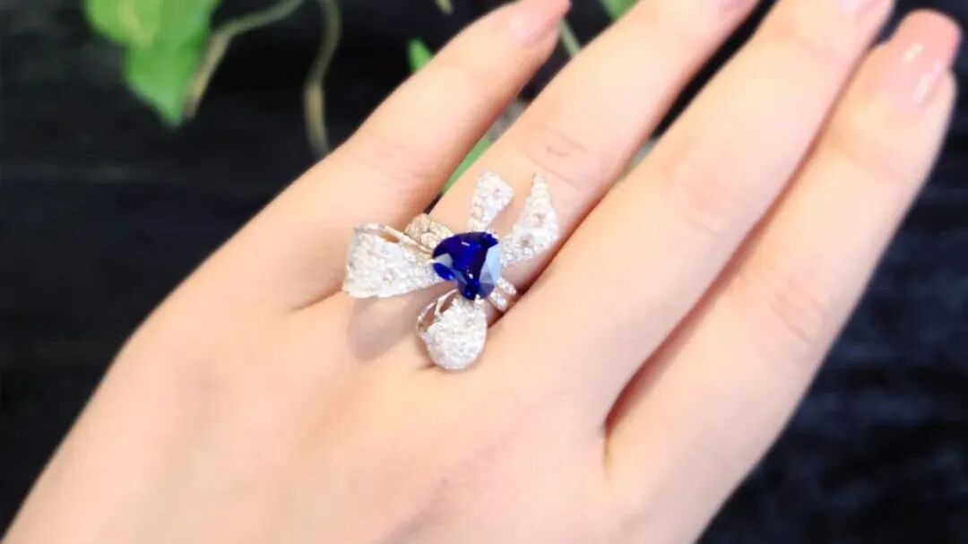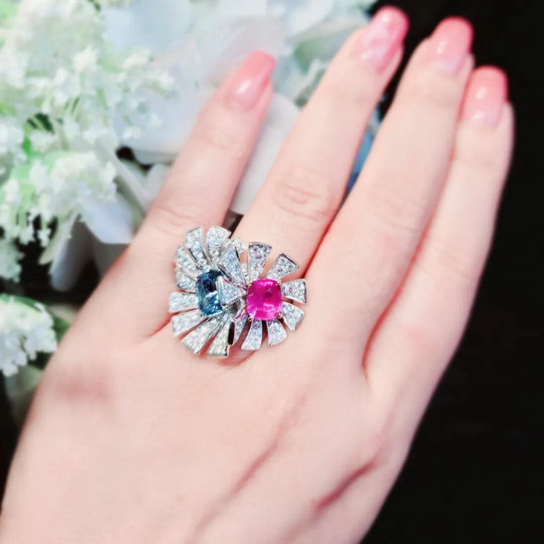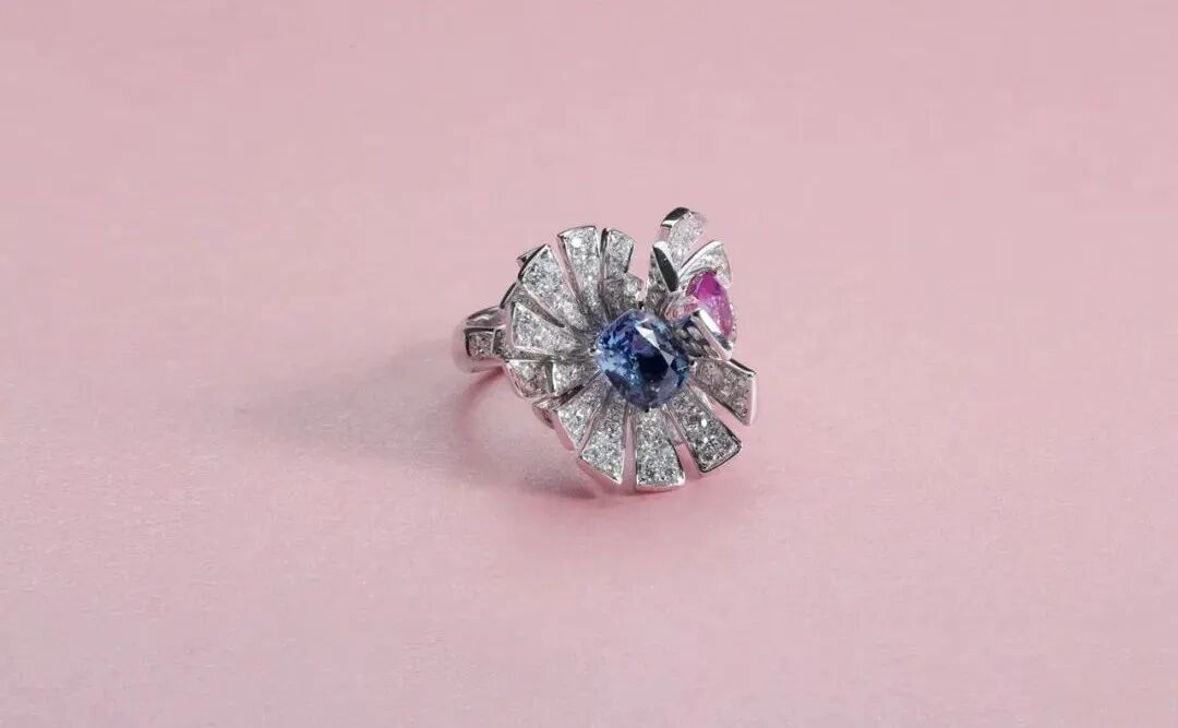 2.40克拉粉色蓝宝石、2.31克拉蓝色蓝宝石配钻石戒指
