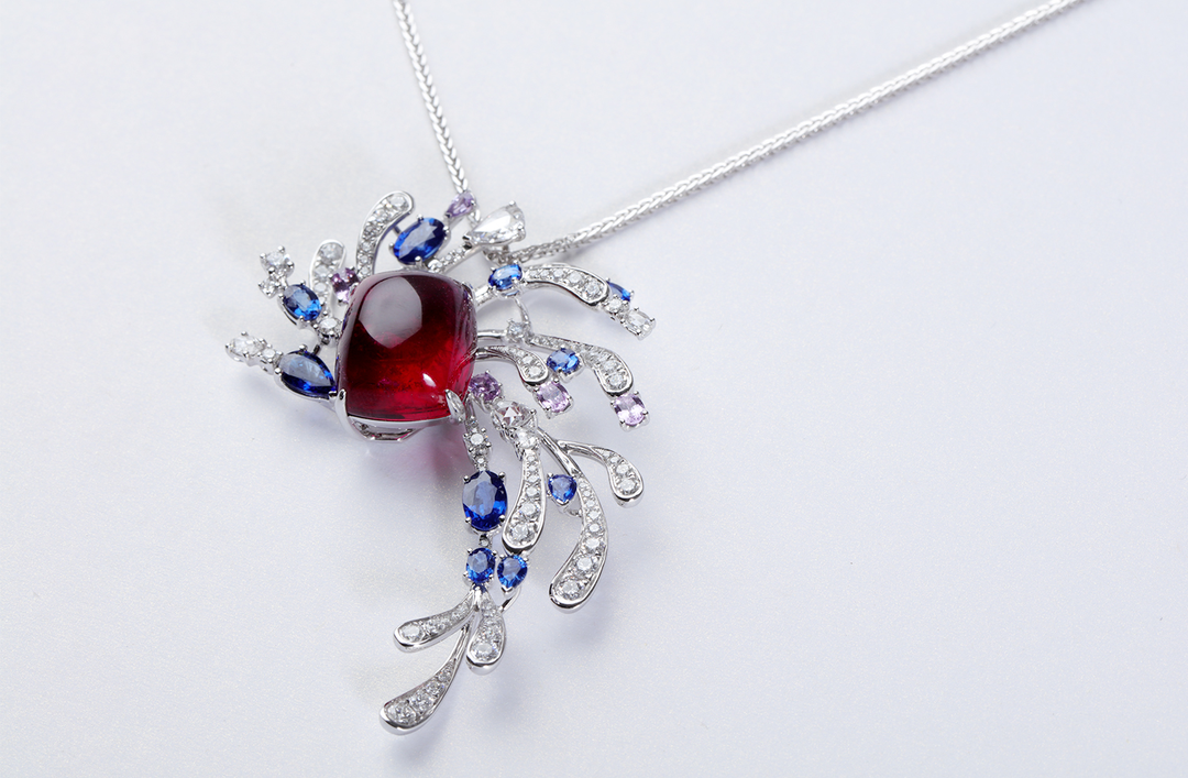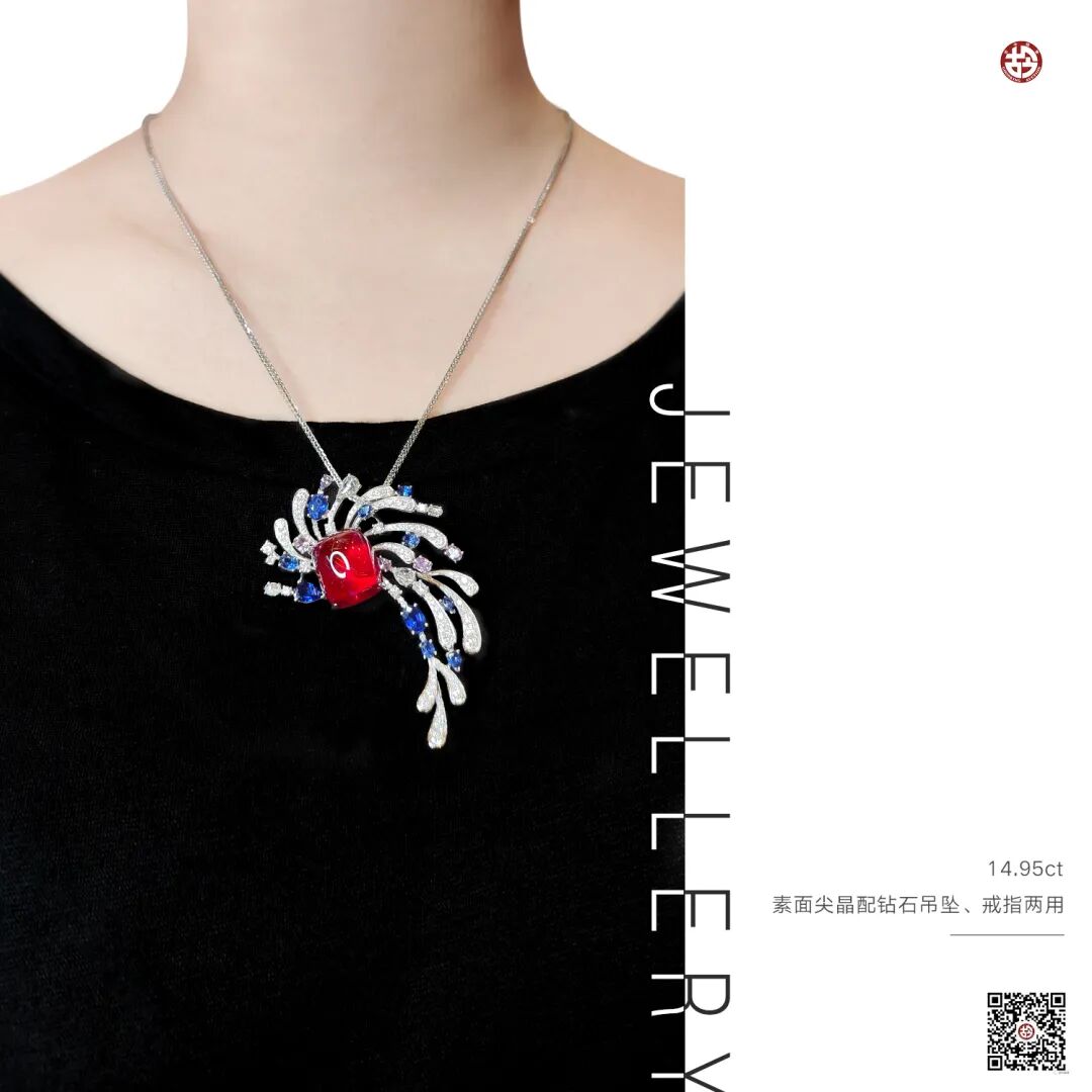 14.95克拉素面尖晶配钻石吊坠、戒指两用
