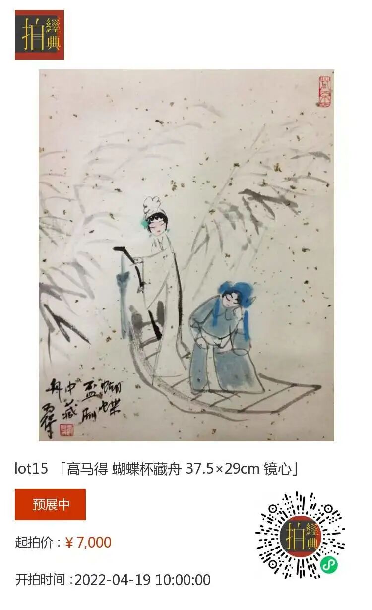 款识:蝴蝶杯剧中藏舟。马得。