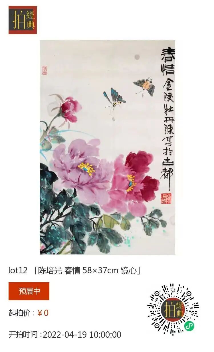 陈培光,号阿光、金陵牡丹陈,1933年出生于福建漳平市。2000年被江苏省政府聘请为江苏省文史研究馆馆员,并被选为江苏省花鸟画研究会会长。
