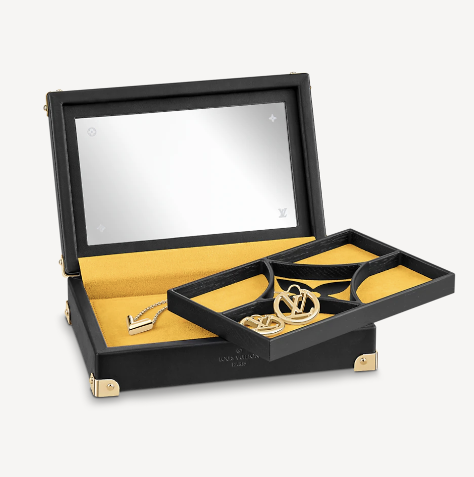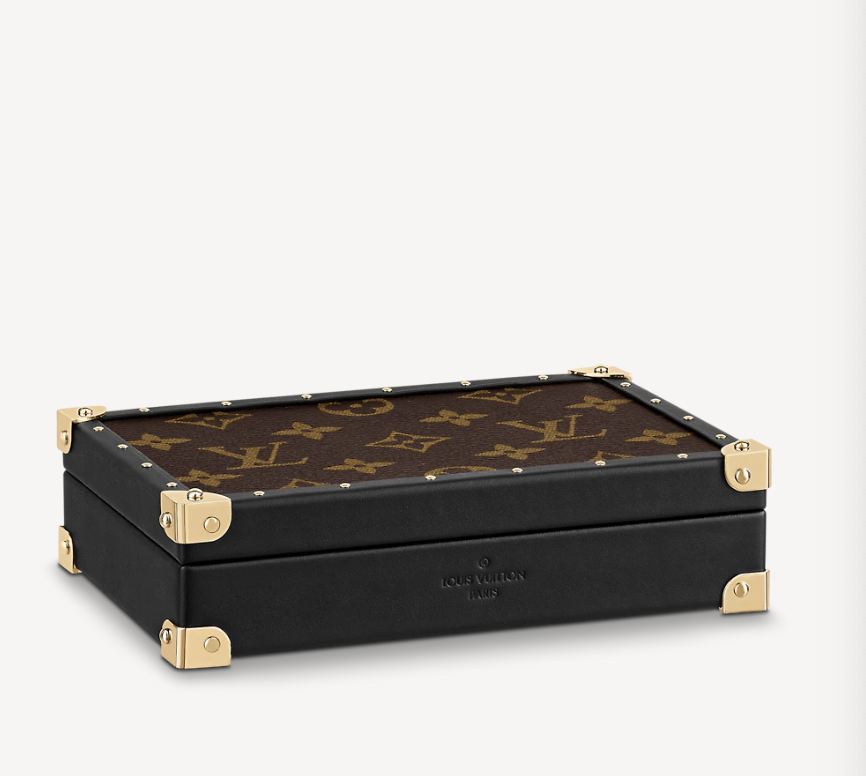 LV的珠宝盒临摹路易威登经典硬箱轮廓,搭配 Monogram 帆布和饰钉边角,致意品牌旅行传承。成就收藏佳选。