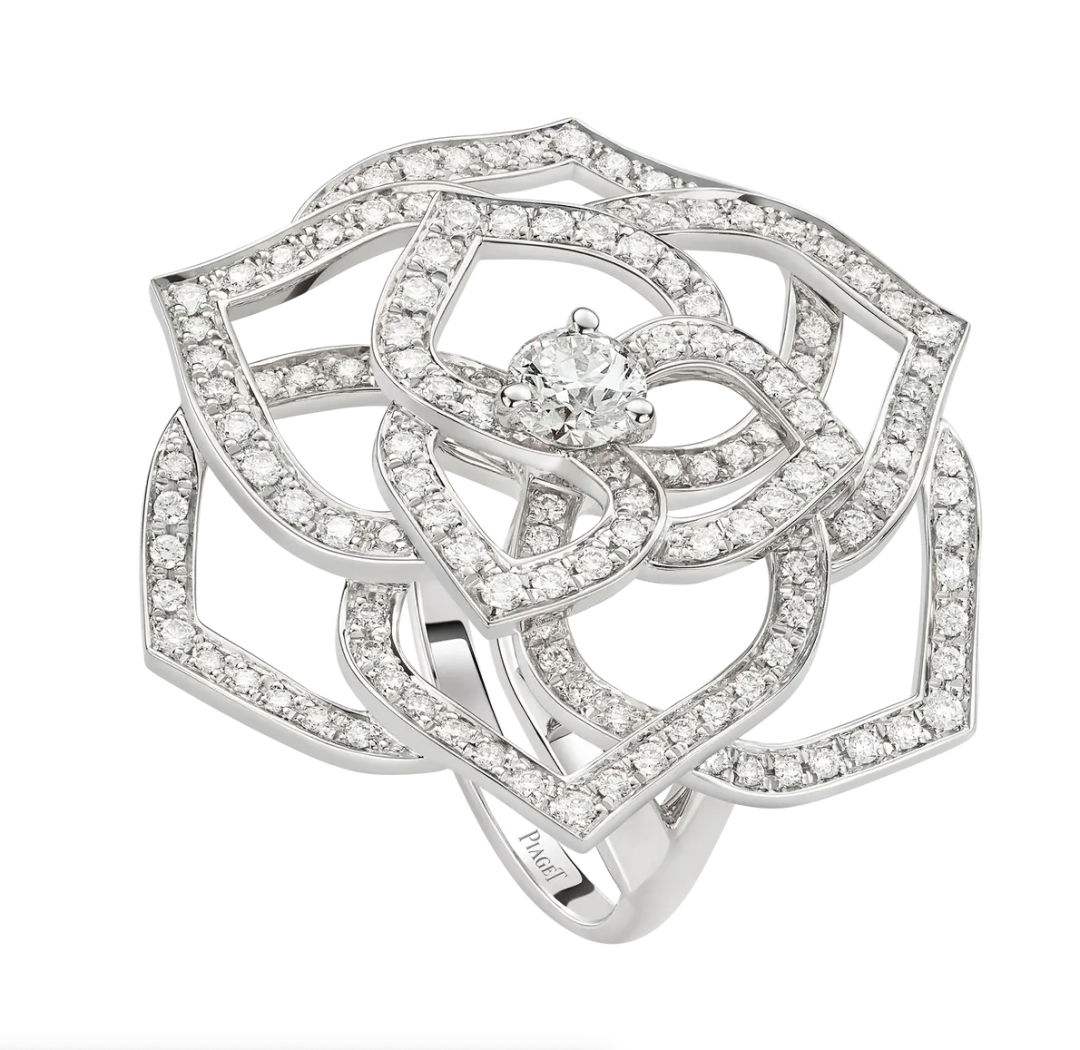 PIAGET 玫瑰花系列 18K白金镶钻戒指