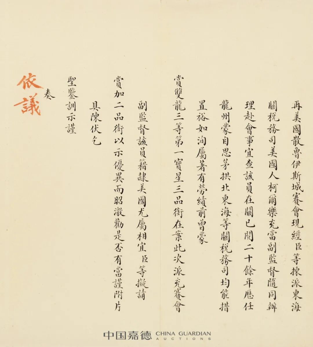朱批奏折中的百年外交风云丨中国嘉德2021秋拍