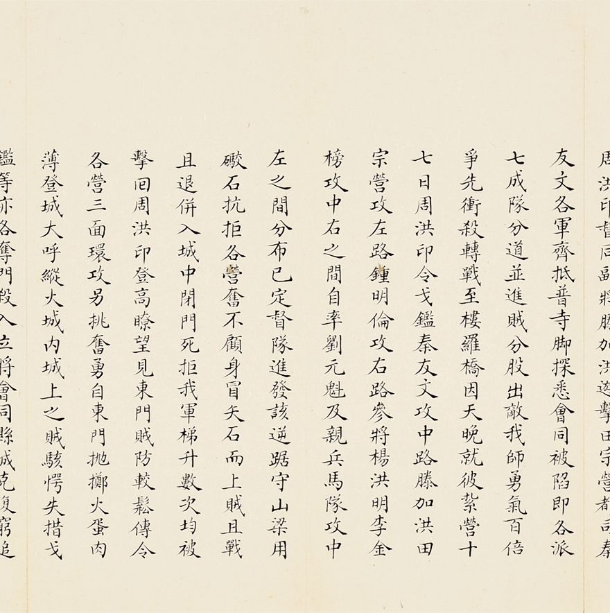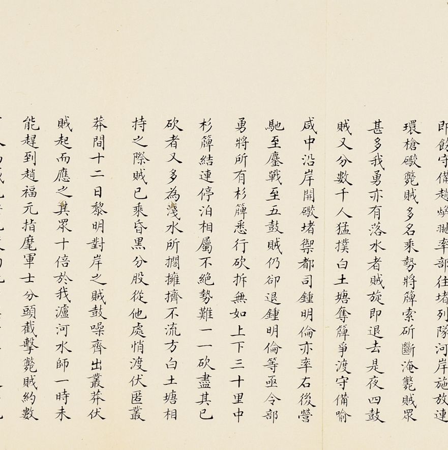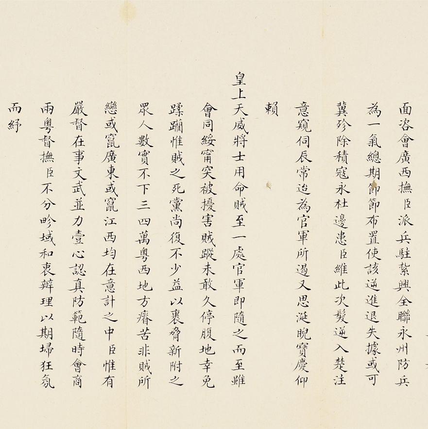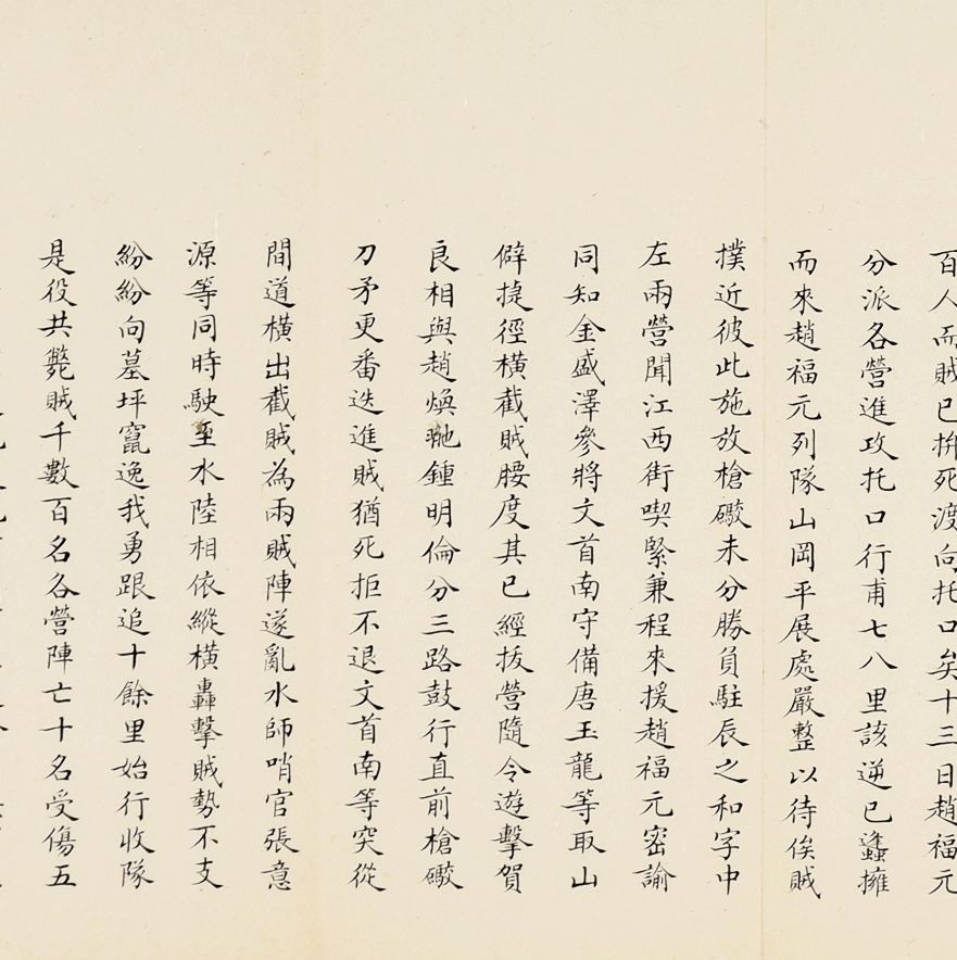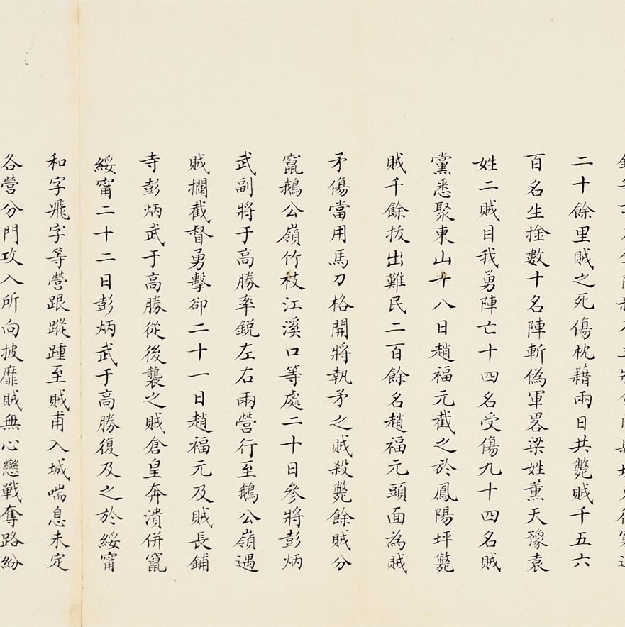 奏为会商抽收海关提单捐、轮舟火车客票捐折(朱批一处)是折长度达18扣,系由外务部主稿,会同商部、户部办理折,系外务部奕劻、瞿鸿禨、那桐、联芳、伍廷芳,并商部载振、陈璧、顾肇新,并户部王文韶、荣庆、鹿传霖、赵尔巽、景澧、陈邦瑞、增崇、戴鸿慈等奏为安徽巡抚诚勋奏请抽收海关提单捐、轮舟火车客票捐折。此外,此次奏折系列中,还有一条主线,即同治初期湖南巡抚恽世临(1817-1871)奏报剿灭太平天国残部、捻军以及湖南边境苗民起义等事件。清同治二年(1863)太平军石达开在四川大渡河失败后,其流散部队李幅猷万余人转战川黔边境,拟绕道湖南,仍回江西。李幅猷在榆树湾击败清军驻防水师,挺入黔阳县境,夜渡沅水,进驻托口。九月二十七日进抵会同县城,太平军攀台而上,阵斩邓尔昌,占领县城。二十八、二十九日清军总兵周洪印督同各军,分五路围攻太平军,太平军败退撤出城外。是折1折24扣,详述战斗与太平军残部情形,内如“会同知县邓尔昌仓猝集勇登城守御贼于城,身低薄处蚁附以登邓尔昌骂贼不屈,被贼支解而死”等惨烈战况描述。