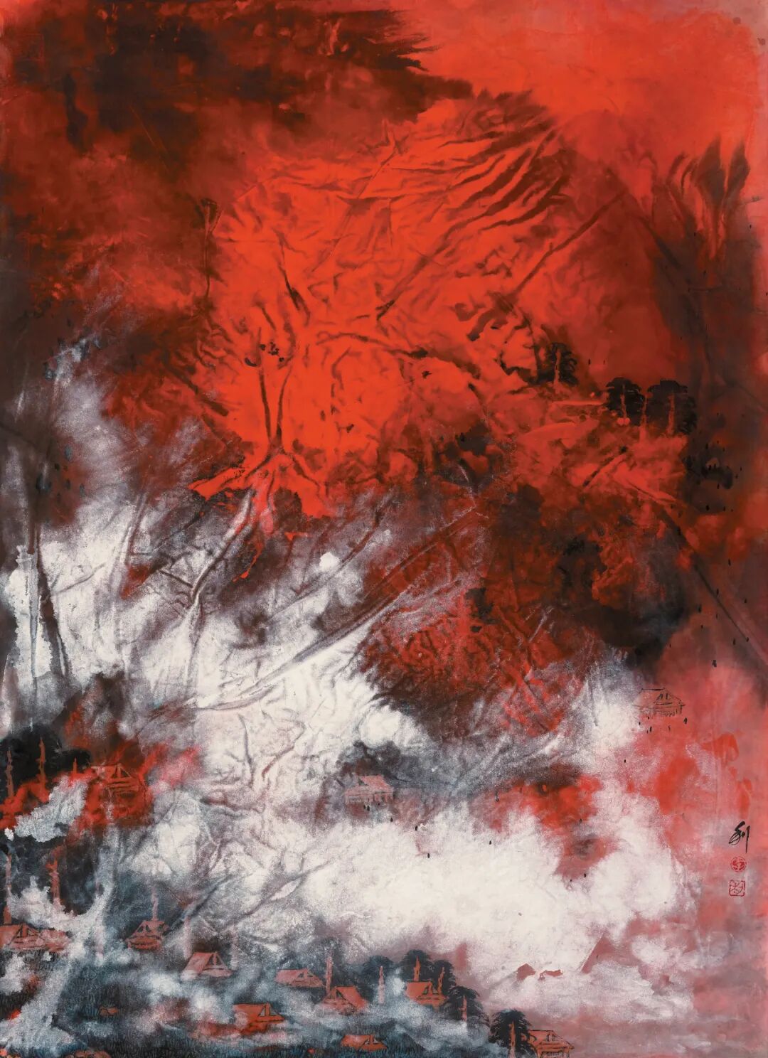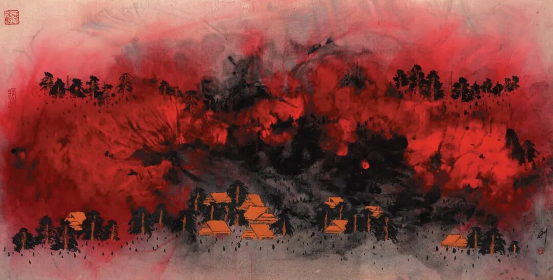 《研一池铅朱 挥涂万丈霞》Grinding Red Ink to Splash, A Sky of Sunset