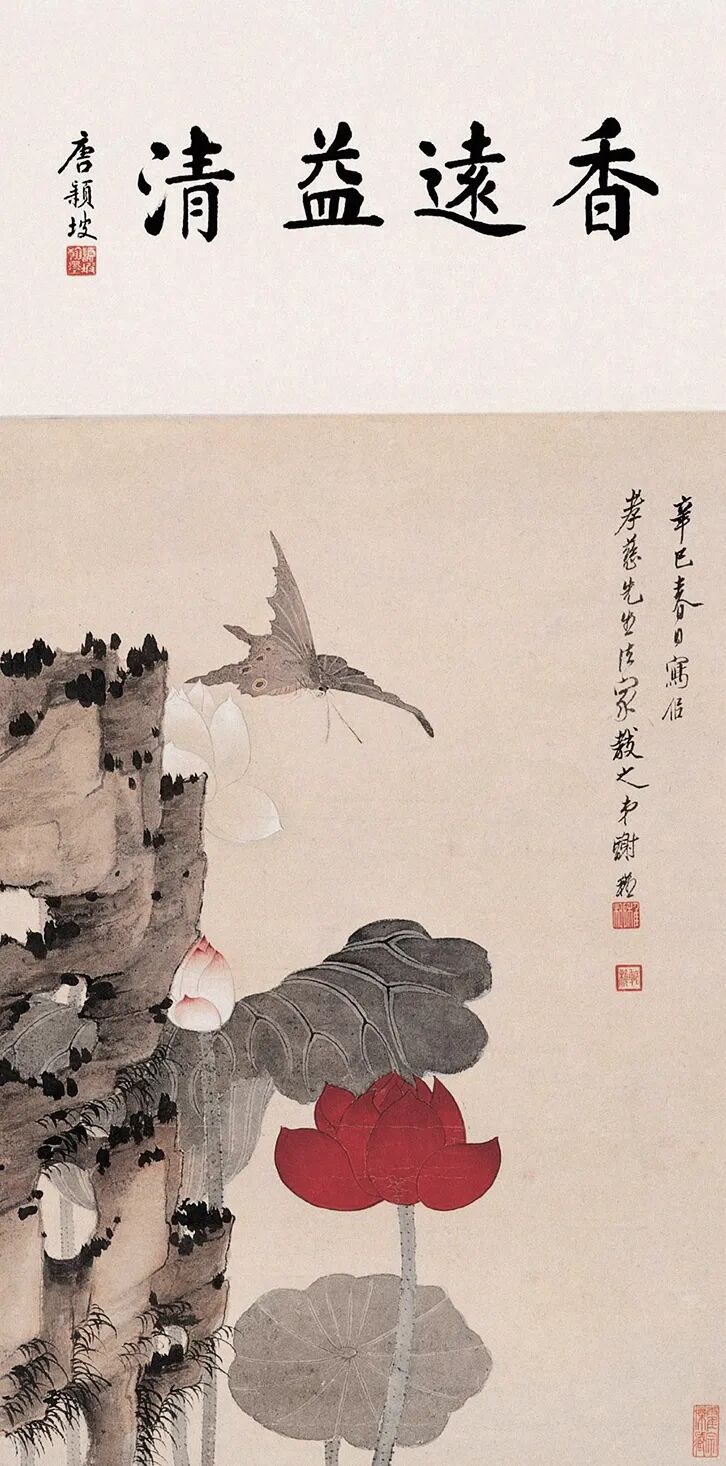 陈老莲的花鸟直接得益于宋人,在尚夸张变形之外,更体现出宋画格致富丽的特点,艳丽中亦不乏淡雅清丽之姿,呈现出一派精美中蕴含高傲冷逸的格调。这是老莲花鸟画的“冷僻”味,也是谢稚柳最欣赏陈老莲花鸟画的地方。