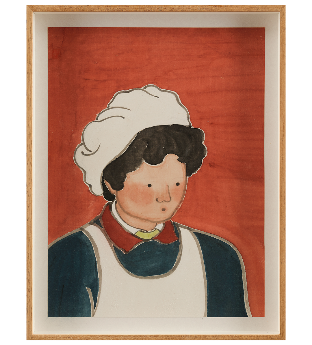 “与传统肖像画的表达方式有所不同,我的肖像画没有着重表现画中人物的个性,而是通过面部的同化处理表现人物共性特征。通过简洁有形式意味的人物探究肖像画的表现方式和表达的可能性。在人物形体微小的变化中寻找形体的绘画意味,也在水墨,水彩,丙烯不同材料的实践中探索在统一绘画语言框架中不同材料特性所带来的突破。”