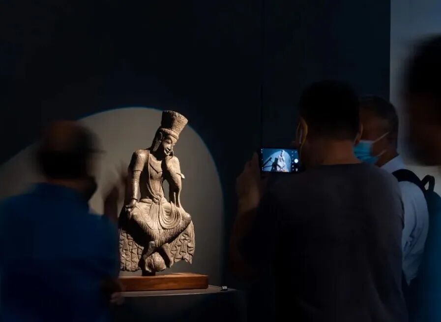 同场欣呈多件珍品,如北魏石灰岩雕交脚思惟菩萨像,属奥尔布赖特诺克斯美术馆及 Norman A. Kurland 递藏,姿态优雅,佛相慈祥,尤为难得。