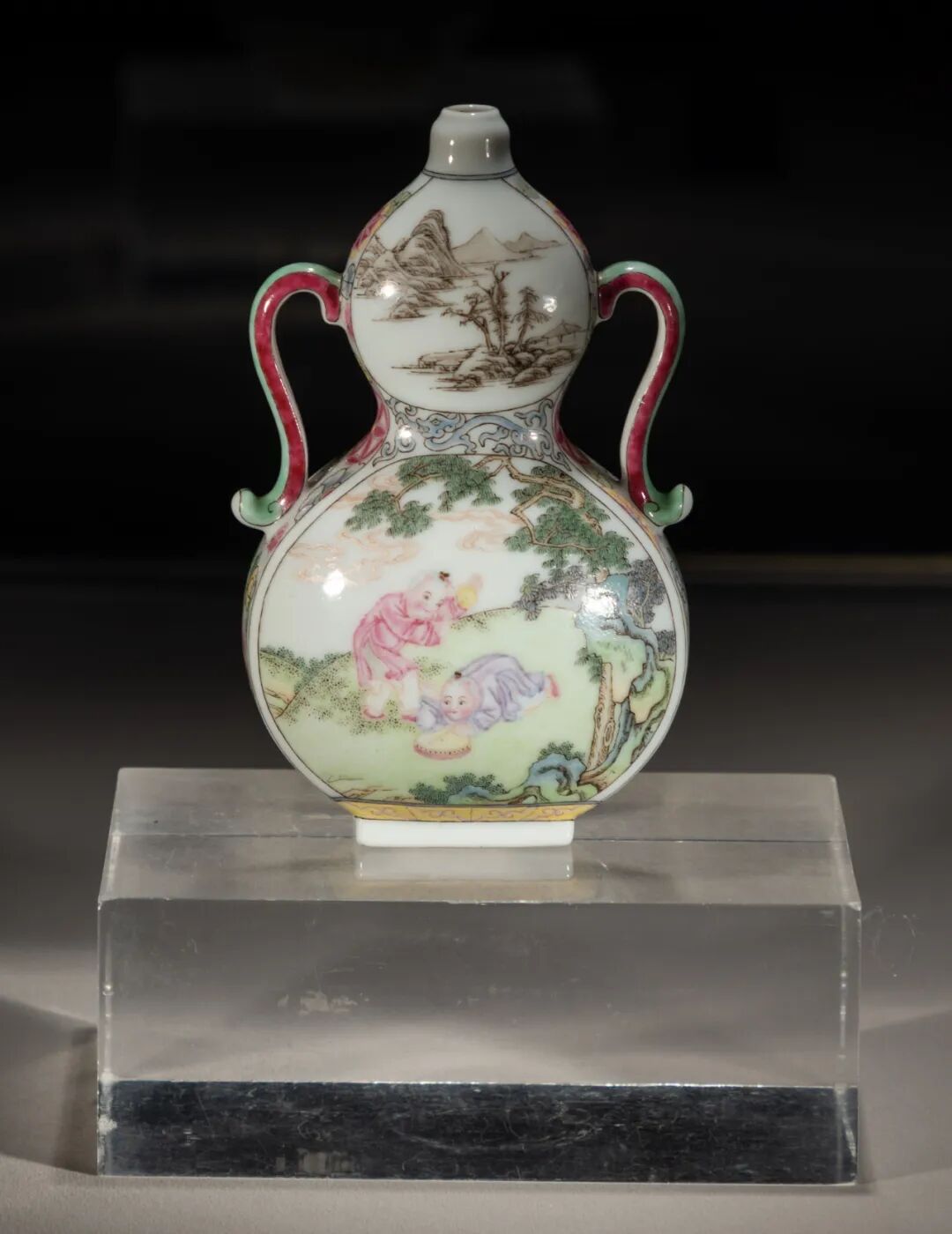 今春中国艺术珍品专场尚有画工精妙的乾隆青花瑞鹿图橄榄瓶、精致入微的珐琅彩婴戏图双耳葫芦瓶。