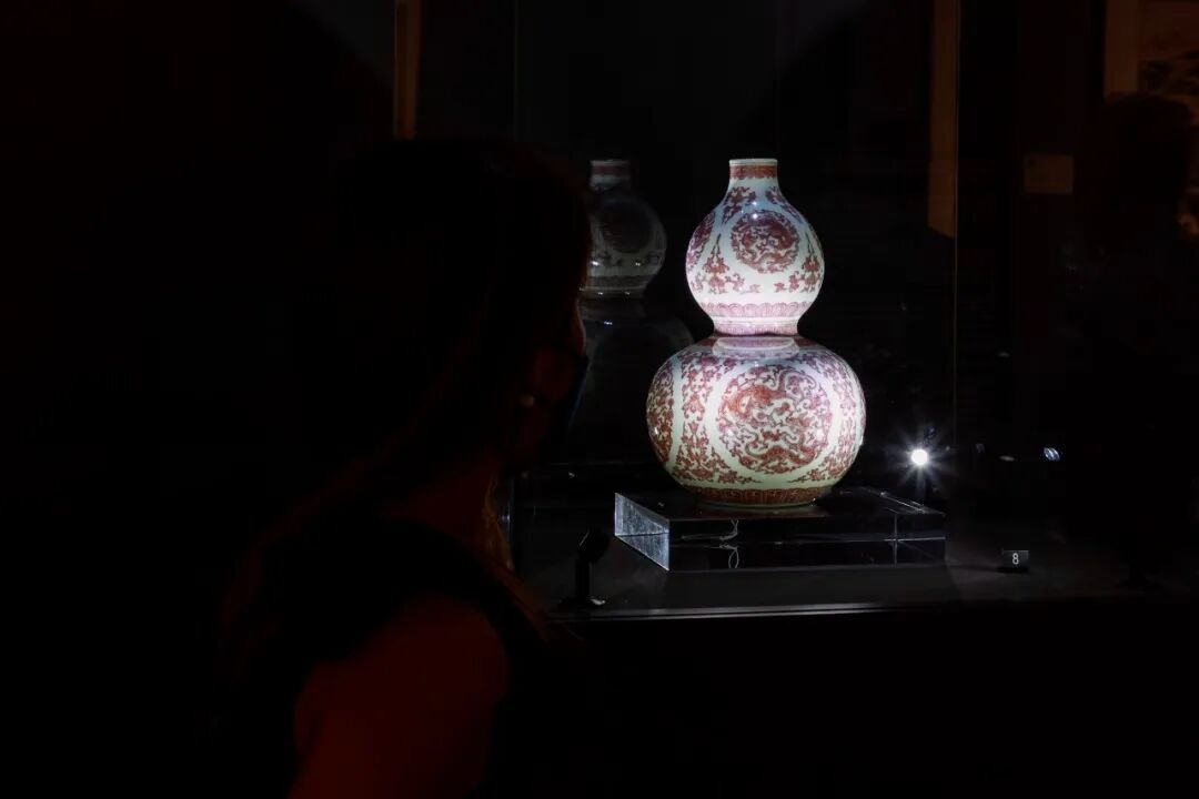 并呈刘銮雄珍藏御瓷,以永乐青花龙纹罐领衔,笔触灵动,当属明初臻绝之作,或为孤品;同场且有成化龙纹盘,青花淡雅,釉面温润,极是难得。另呈清乾隆釉里红螭龙灵芝葫芦瓶,器形寓意吉祥,瓶身繪團螭紋細緻悅目,純以銅紅繪製之乾隆瓷器極甚珍罕。