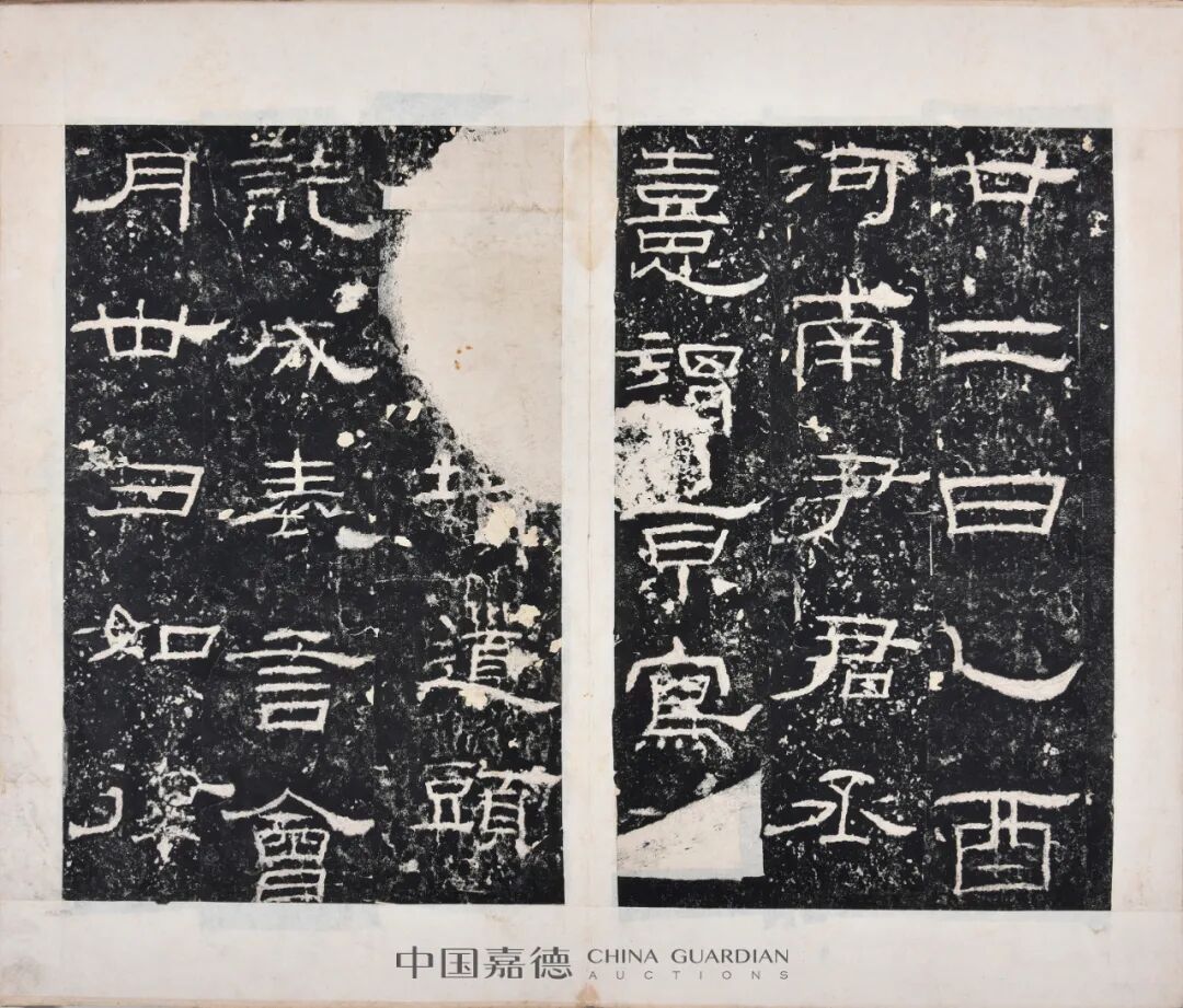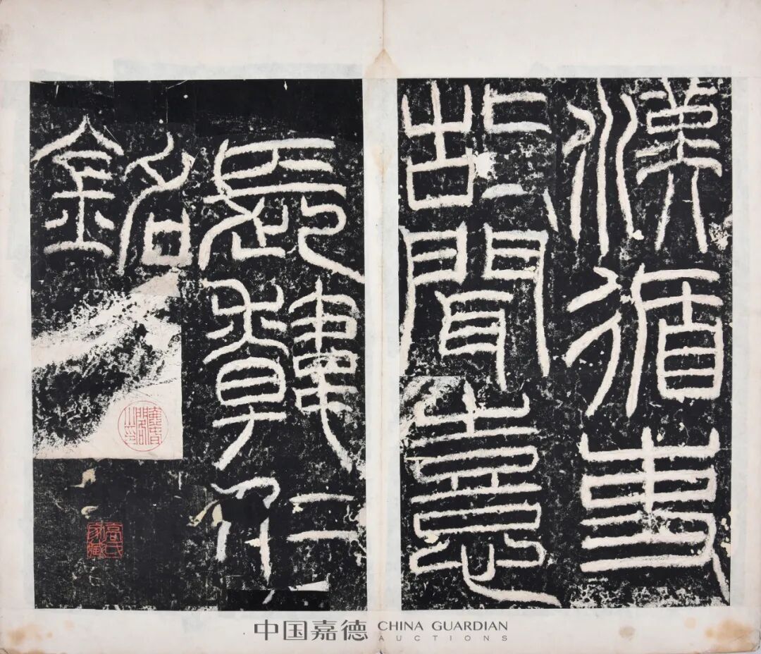 “金石碑帖”专场汇集金石、碑帖类藏品66件,商周吉金、汉代砖刻、六朝墓志、唐代碑碣、明清刻帖,蔚为大观。唐昭陵六骏拓,为民国间李月溪拓本,尺幅阔大,为石刻中耳熟能详之名品。近代高鸿飞题跋《汉韩仁铭碑并额汉孔宙碑(残)》,纸墨厚重,为汉隶名品。宋淳化阁帖为法帖之祖,为书法爱好者临池鉴赏所必备。
