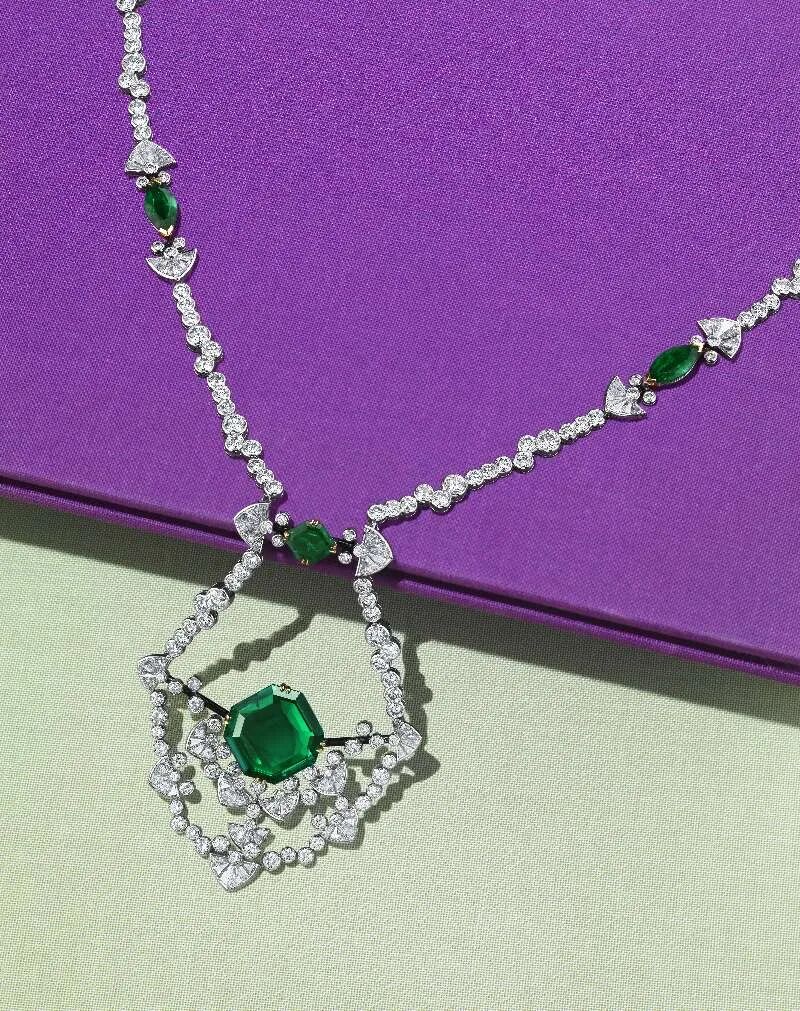 9.46、1.62、1.35及1.33克拉哥伦比亚及赞比亚天然祖母绿 “Dentelle” 项链估价:港元 4,000,000 - 6,000,000