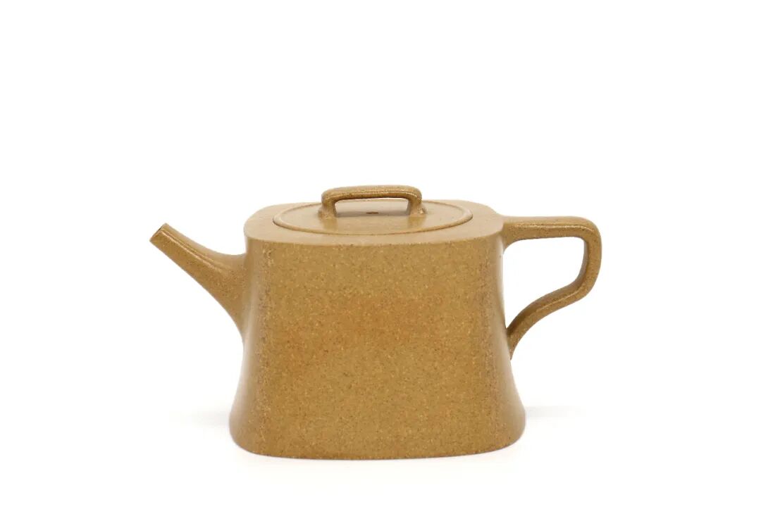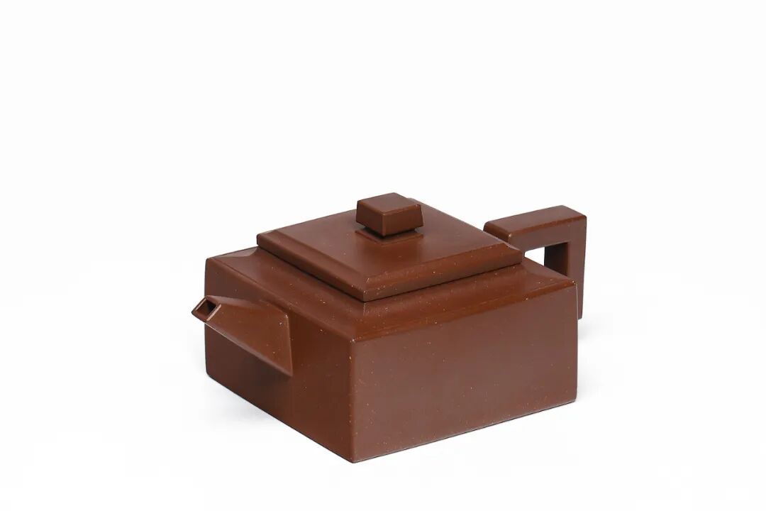 温可嘉作品《圆纳壶》,此壶为临摹陈曼生的《圆纳壶》。造型简约,身若井栏。壶体扁圆,圆腹上收下敛,圆折肩,环形耳把,短曲流,出水甚好。整体造型,粗细对比,曲直相间,圆润中透出古朴韵味,造型洗练却无以增减。袁鹏作品《方墩》,棱角分明,线条挺括,形神具备,是四方壶的经典器型之一。扁方钮宽厚有力,四方鼓盖折线分明,盖扣于壶口之上,气势雄大。方形弯流霸气十足,流口平衡直出,朝向水平方向。方形壶把转折迂回步步到位。四方凹底设计,底部稳重中见大气。![]()