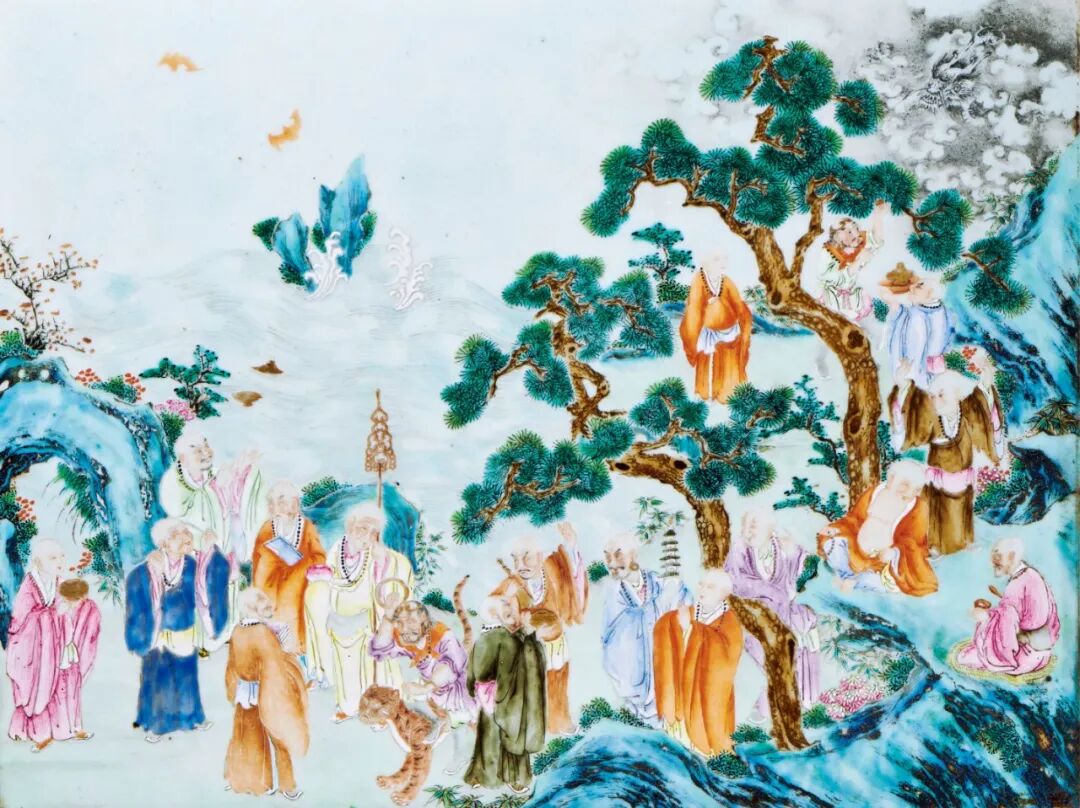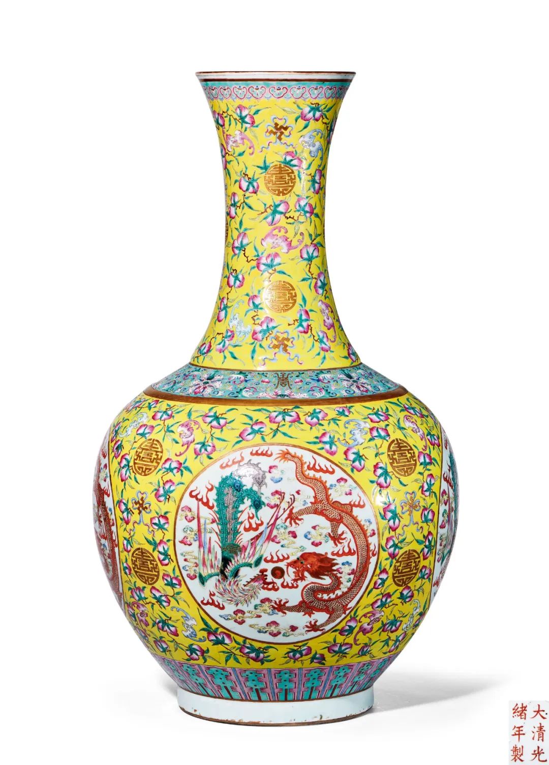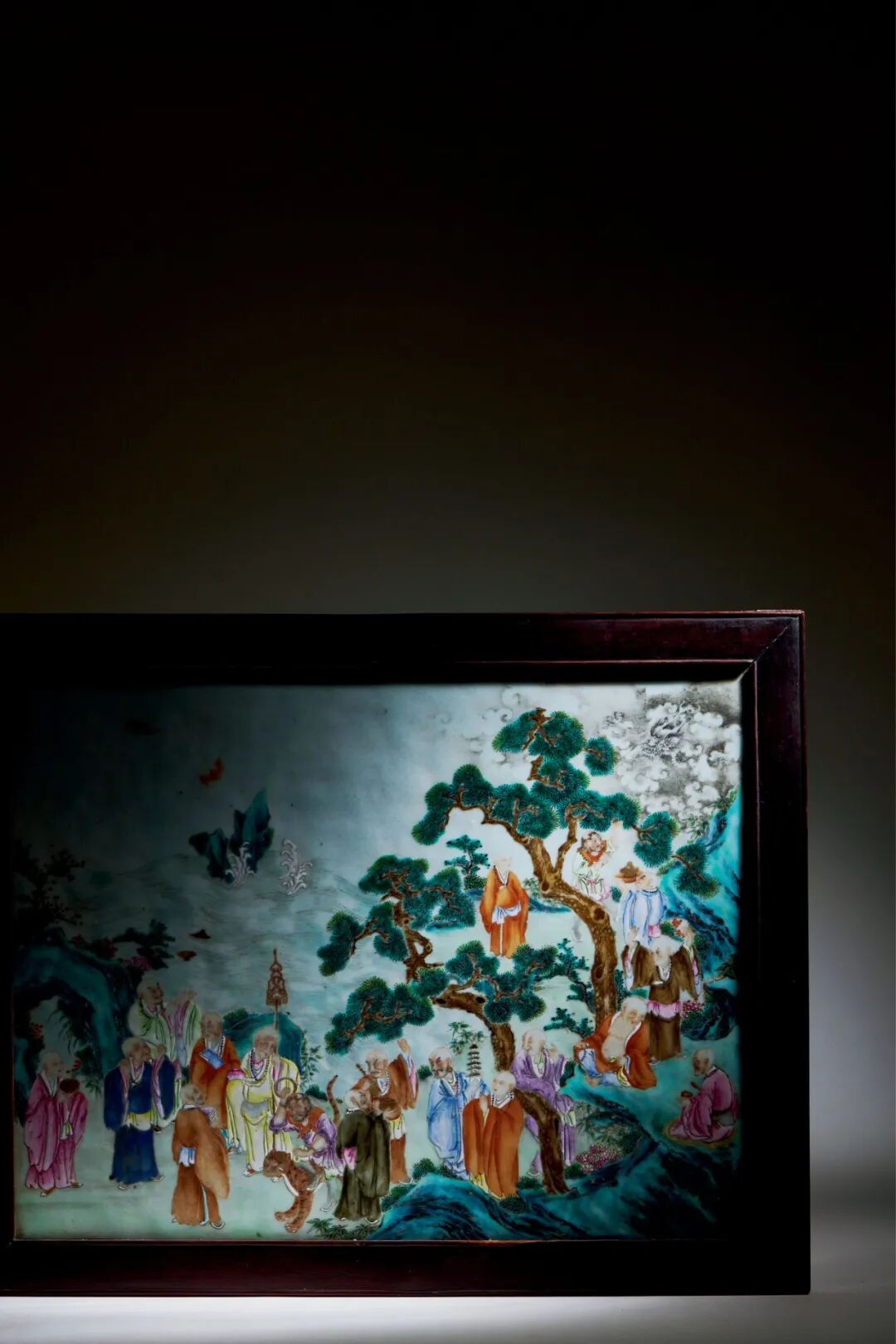 拍品估价:380,000 - 450,000 人民币记录:天津国拍,2014年11月15日“天津文物”专场,编号357此对青花碗造型如仰钟,大气规整,碗身敞口,折腰,腹部斜收,腹底向内平折,下设圈足。碗身胎骨精细,内外施白釉,外壁绘两条祥龙,间饰以祥云,碗心青花双圈绘立龙云纹。碗底留“大清道光年制”六字三行篆书款。本品胎釉晶莹白润,青花发色浓妍泛紫,沉厚浓郁,力追嘉靖遗韵。点缀“壬”字形祥云明显带有嘉靖青花装饰风格,清宫档案中既有称其为“嘉窑龙纹碗”之记录。此种碗雍干可见同样形制,应为清宫御窑摹仿嘉窑之作。拍品估价:180,000 - 280,000 人民币瓶直口长颈,溜肩鼓腹,圈足。通体施白釉,腹部粉彩描绘各式花卉争奇斗艳,枝干壮硕,自瓶底而出,沿腹部蜿蜒而上,枝繁叶茂,粉花绿叶,果实累累,瑞鸟站立枝头,神采奕奕。运用渲染技法,成功地表现出枝繁叶茂花开富贵的寓意,以及枝叶的阴阳向背。构图疏密有致,敷彩娇艳夺目,釉彩浓淡相宜,为厅堂陈设佳品。居仁堂原址位于西苑中海西岸,原名海晏堂,是慈禧太后晚年的寝宫和会见外国女宾的地方。北京政府成立后,中南海被辟为总统府,居仁堂成为袁世凯办公和居住之地。民国精品瓷以民初“洪宪瓷”的烧制水平为最高,“洪宪瓷”是在1916年袁世凯称帝后,郭葆昌在景德镇督烧了一批以水彩和粉彩为主的“御用”瓷器,工艺水平达到清官窑的水平,是景德镇瓷业在衰退中产生的一朵奇葩。Lot 1094 清光绪 黄地粉彩福寿开光龙凤纹大赏瓶赏瓶,为雍正一朝创烧品种,是皇帝赏赐大臣用器,也是清代吏治的一种体现,通常以青花绘缠枝莲纹,取其“清廉”之意。此对赏瓶一改传统的装饰风格,以龙凤相结合的品种属精品之作。拍品造型规整,长颈溜肩,肩凸起弦纹,腹部浑圆,整器施黄釉为地,粉彩绘制五层纹饰,颈部绘繁密的福寿纹,肩部绘莲花寿字纹,器腹部以葫芦藤蔓绘制,并开光内绘一龙一凤穿梭于火云纹之间,构图疏密有致,绘制极为精细,尤其是凤凰的脖颈、翎毛、凤首,一丝不苟,毫发毕现,甚是难得。光绪时期是清代后期官窑烧瓷的中兴之时,此器纹饰独特精美,不流于定制,是难得的珍品。拍品估价:130,000 - 180,000 人民币参阅:《上海博物馆藏康熙瓷图录》,上海博物馆、两木出版社,1998年,页8,图6 拍品为撇口、束腰式,二层台式足,通体以青花釉里红技法,通景绘就山水泛舟并题诗文。图画风格与上海博物馆藏“康熙壬子中和堂制”款青花釉里红山水图盘相同。本品以青花绘山水渔唱舟行图,缀以釉里红为树叶及石崖之间的花草,并于一侧以青花题诗“一叶扁舟泊碧湾,往来人事不相关。绸收烟注微茫外,钓下寒潭远近间。沽酒每同明月饮,亡机常伴白鸥闲。泽梁况复官无业,右抚长歌任去远。”语出纪振伦《杨家将世代忠勇通俗演义》,但个别字略有改动,似表它意。画中有诗,诗中有画,颇有意境。后落“康熙壬子冬月为尔岳老先生政”落款。“老先生”为旧时官场中的称呼,在康熙以前,三司见督抚称老先生,见巡抚称先生大人。拍品估价:80,000 - 120,000 人民币屏心板面平整光洁,瓷质细腻白净,色白中泛青,其上以粉彩绘十八罗汉图,远处绘寿山福海及上下翻飞的蝙蝠,空中绘墨彩云龙,地面山石嶙峋,前景绘苍松,十八罗汉或远或近,皆姿态各异,诸尊者持不同法器以明身份。罗汉,释迦牟尼佛弟子,得道之人,在世间护持佛道,教化度众。画面构图饱满,山峦迭翠,层次分明,人物刻画精细,深得粉彩工艺之精髓。其可作插屏或挂屏,摆设于室内,更显华丽气派。本次羿趣17艺术周还将推出全新的门类——当代水墨画。水墨艺术作为中国文化性与人类社会普遍性的价值载体,在“百年未有之大变局”中扮演着重要的角色。负责人张旭女士与资深书画鉴定专家传文先生将携「叠翠流金-当代名家水墨专场」于4月26日晚八点亮相,带着大家探索当代水墨画的艺术理念。·直播嘉宾