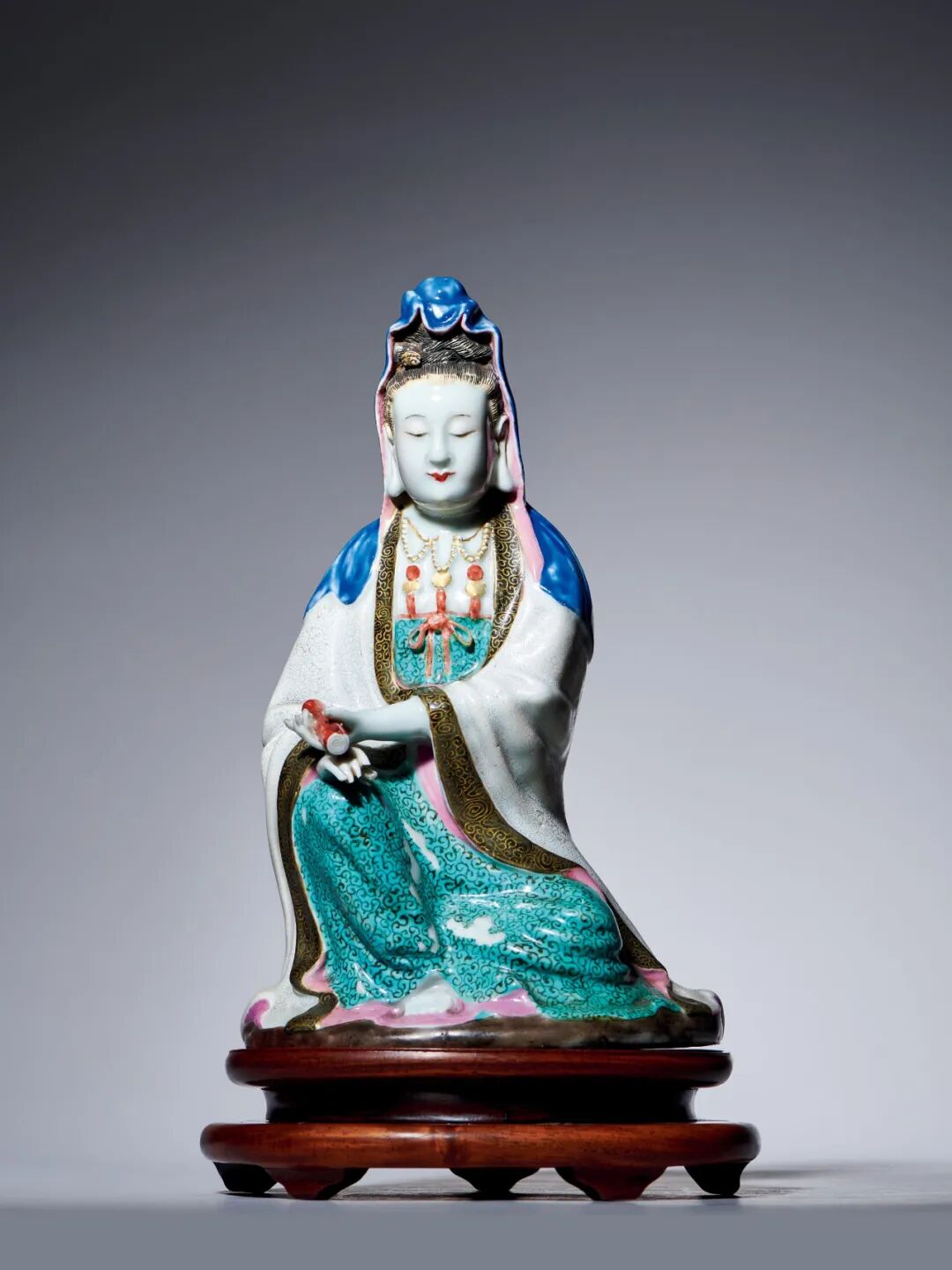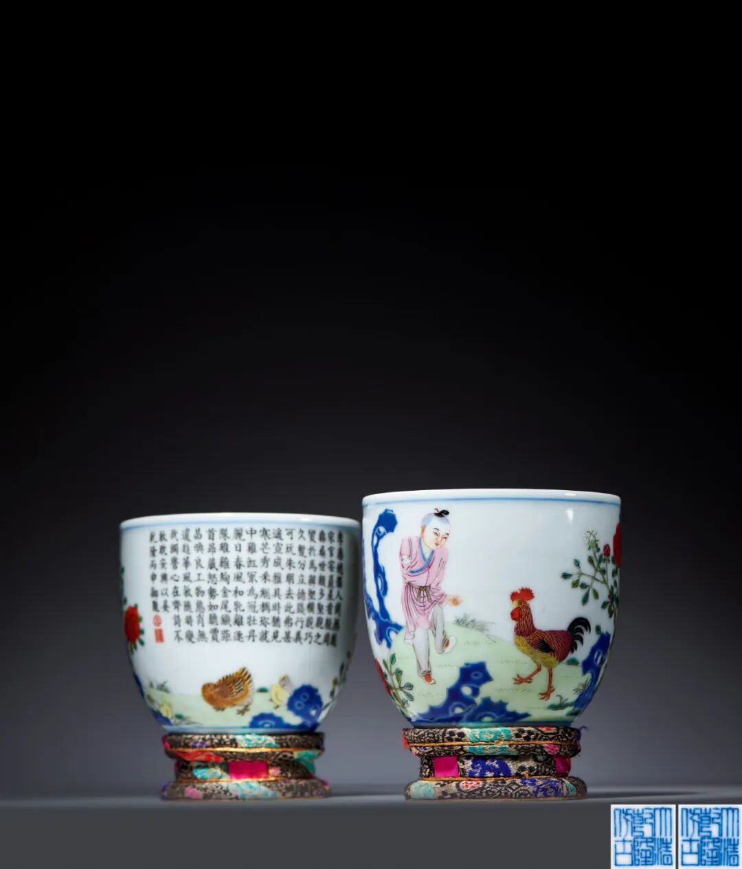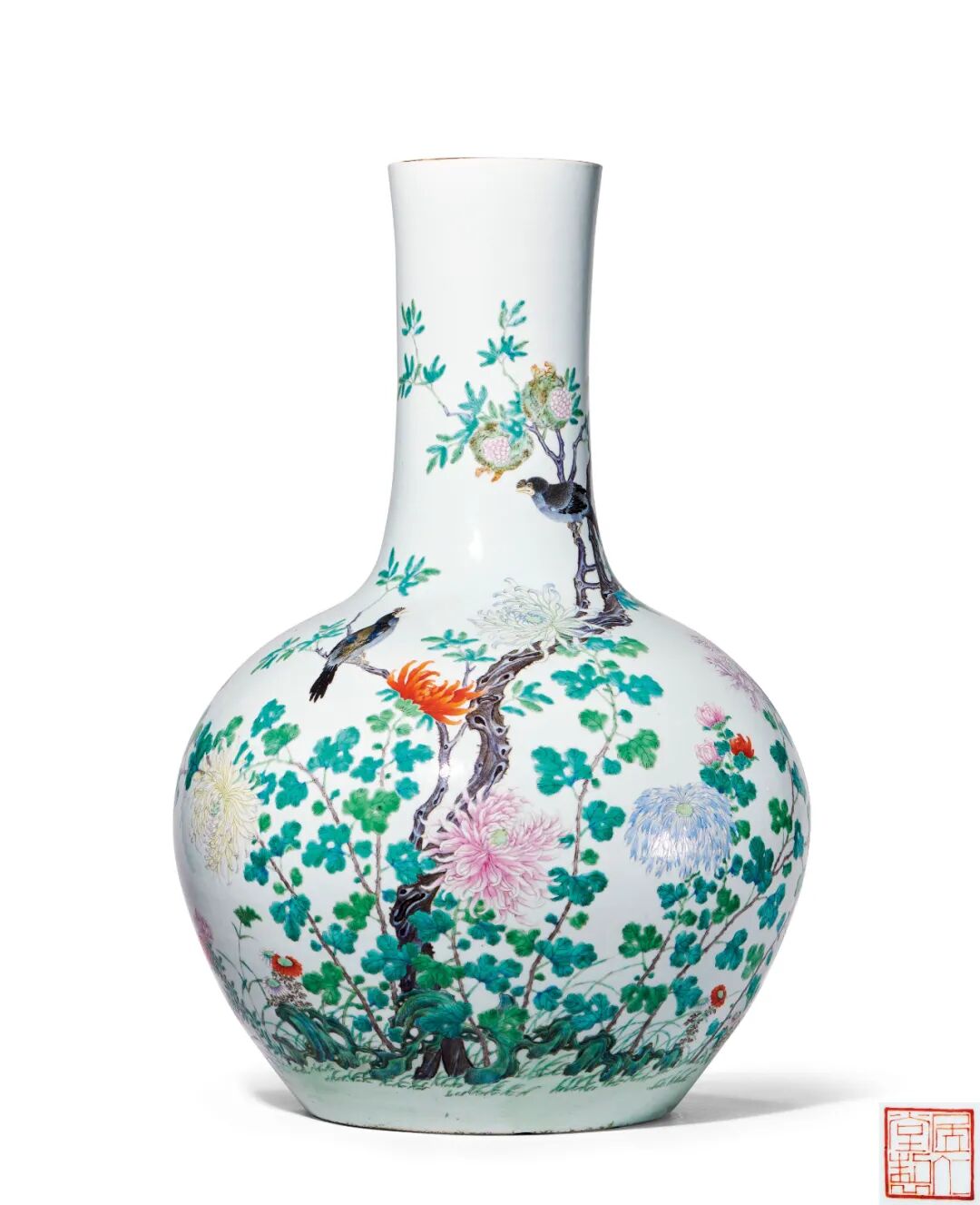 拍品估价:380,000 - 450,000 人民币记录:天津国拍,2014年11月15日“天津文物”专场,编号357此对青花碗造型如仰钟,大气规整,碗身敞口,折腰,腹部斜收,腹底向内平折,下设圈足。碗身胎骨精细,内外施白釉,外壁绘两条祥龙,间饰以祥云,碗心青花双圈绘立龙云纹。碗底留“大清道光年制”六字三行篆书款。本品胎釉晶莹白润,青花发色浓妍泛紫,沉厚浓郁,力追嘉靖遗韵。点缀“壬”字形祥云明显带有嘉靖青花装饰风格,清宫档案中既有称其为“嘉窑龙纹碗”之记录。此种碗雍干可见同样形制,应为清宫御窑摹仿嘉窑之作。拍品估价:180,000 - 280,000 人民币瓶直口长颈,溜肩鼓腹,圈足。通体施白釉,腹部粉彩描绘各式花卉争奇斗艳,枝干壮硕,自瓶底而出,沿腹部蜿蜒而上,枝繁叶茂,粉花绿叶,果实累累,瑞鸟站立枝头,神采奕奕。运用渲染技法,成功地表现出枝繁叶茂花开富贵的寓意,以及枝叶的阴阳向背。构图疏密有致,敷彩娇艳夺目,釉彩浓淡相宜,为厅堂陈设佳品。居仁堂原址位于西苑中海西岸,原名海晏堂,是慈禧太后晚年的寝宫和会见外国女宾的地方。北京政府成立后,中南海被辟为总统府,居仁堂成为袁世凯办公和居住之地。民国精品瓷以民初“洪宪瓷”的烧制水平为最高,“洪宪瓷”是在1916年袁世凯称帝后,郭葆昌在景德镇督烧了一批以水彩和粉彩为主的“御用”瓷器,工艺水平达到清官窑的水平,是景德镇瓷业在衰退中产生的一朵奇葩。Lot 1094 清光绪 黄地粉彩福寿开光龙凤纹大赏瓶赏瓶,为雍正一朝创烧品种,是皇帝赏赐大臣用器,也是清代吏治的一种体现,通常以青花绘缠枝莲纹,取其“清廉”之意。此对赏瓶一改传统的装饰风格,以龙凤相结合的品种属精品之作。拍品造型规整,长颈溜肩,肩凸起弦纹,腹部浑圆,整器施黄釉为地,粉彩绘制五层纹饰,颈部绘繁密的福寿纹,肩部绘莲花寿字纹,器腹部以葫芦藤蔓绘制,并开光内绘一龙一凤穿梭于火云纹之间,构图疏密有致,绘制极为精细,尤其是凤凰的脖颈、翎毛、凤首,一丝不苟,毫发毕现,甚是难得。光绪时期是清代后期官窑烧瓷的中兴之时,此器纹饰独特精美,不流于定制,是难得的珍品。拍品估价:130,000 - 180,000 人民币参阅:《上海博物馆藏康熙瓷图录》,上海博物馆、两木出版社,1998年,页8,图6 拍品为撇口、束腰式,二层台式足,通体以青花釉里红技法,通景绘就山水泛舟并题诗文。图画风格与上海博物馆藏“康熙壬子中和堂制”款青花釉里红山水图盘相同。本品以青花绘山水渔唱舟行图,缀以釉里红为树叶及石崖之间的花草,并于一侧以青花题诗“一叶扁舟泊碧湾,往来人事不相关。绸收烟注微茫外,钓下寒潭远近间。沽酒每同明月饮,亡机常伴白鸥闲。泽梁况复官无业,右抚长歌任去远。”语出纪振伦《杨家将世代忠勇通俗演义》,但个别字略有改动,似表它意。画中有诗,诗中有画,颇有意境。后落“康熙壬子冬月为尔岳老先生政”落款。“老先生”为旧时官场中的称呼,在康熙以前,三司见督抚称老先生,见巡抚称先生大人。拍品估价:80,000 - 120,000 人民币屏心板面平整光洁,瓷质细腻白净,色白中泛青,其上以粉彩绘十八罗汉图,远处绘寿山福海及上下翻飞的蝙蝠,空中绘墨彩云龙,地面山石嶙峋,前景绘苍松,十八罗汉或远或近,皆姿态各异,诸尊者持不同法器以明身份。罗汉,释迦牟尼佛弟子,得道之人,在世间护持佛道,教化度众。画面构图饱满,山峦迭翠,层次分明,人物刻画精细,深得粉彩工艺之精髓。其可作插屏或挂屏,摆设于室内,更显华丽气派。本次羿趣17艺术周还将推出全新的门类——当代水墨画。水墨艺术作为中国文化性与人类社会普遍性的价值载体,在“百年未有之大变局”中扮演着重要的角色。负责人张旭女士与资深书画鉴定专家传文先生将携「叠翠流金-当代名家水墨专场」于4月26日晚八点亮相,带着大家探索当代水墨画的艺术理念。·直播嘉宾